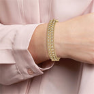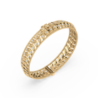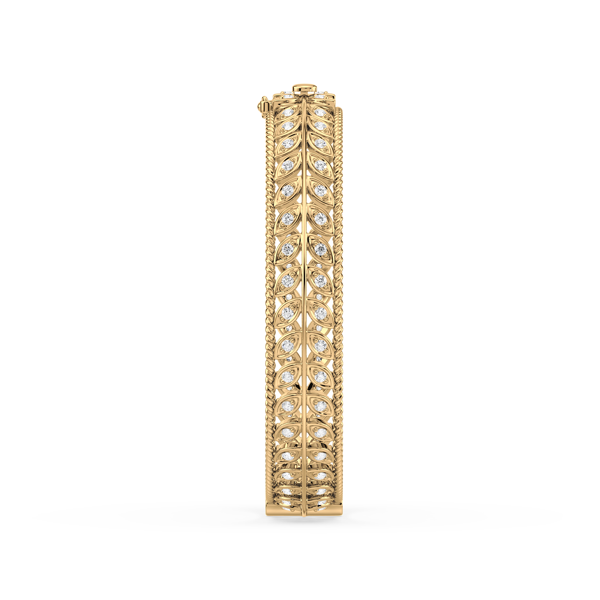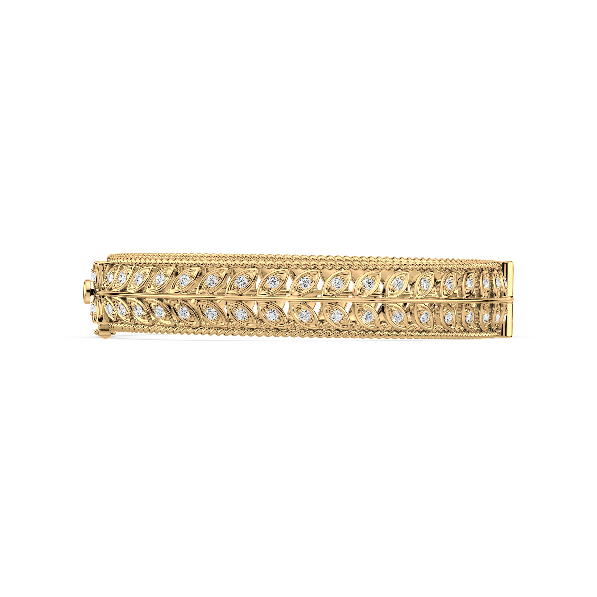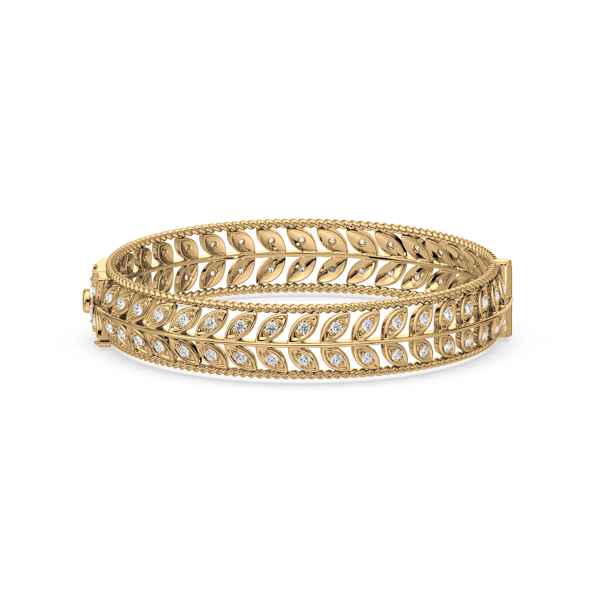 Embrace nature-inspired elegance with this intricately designed bangle featuring delicate leaf motifs adorned with sparkling stones. Its artistic craftsmanship and timeless charm make it the perfect accessory for enhancing your sophisticated look.