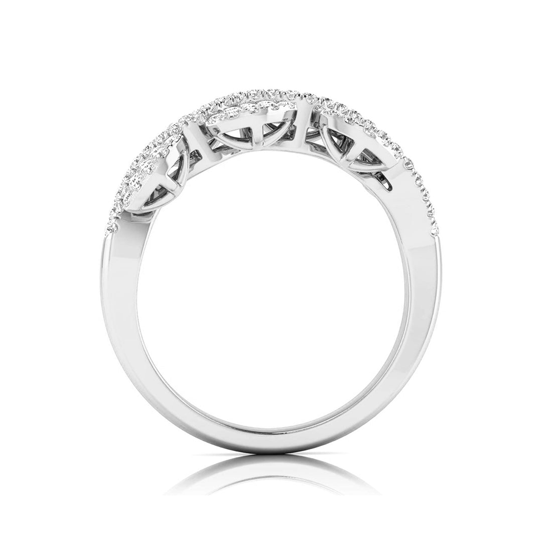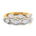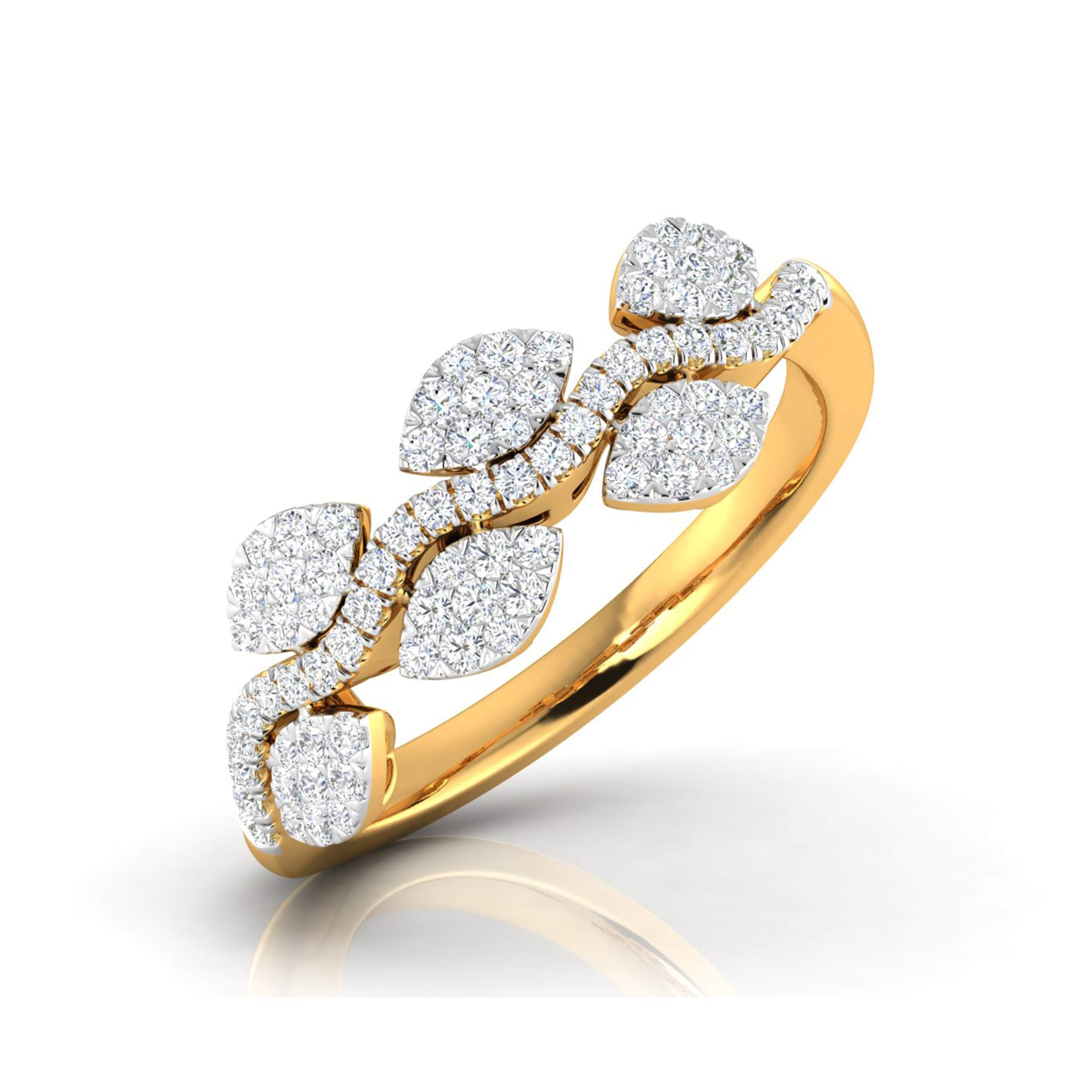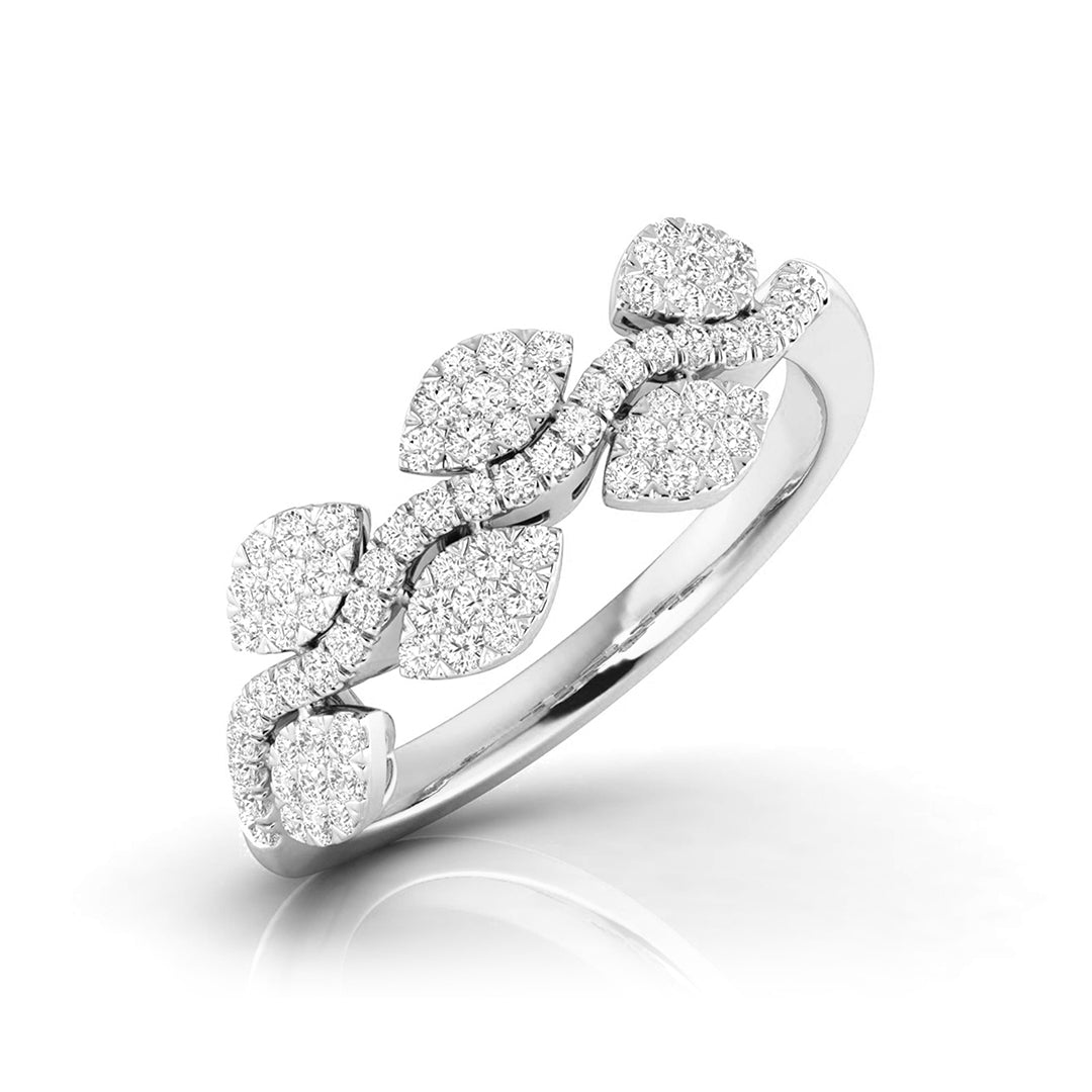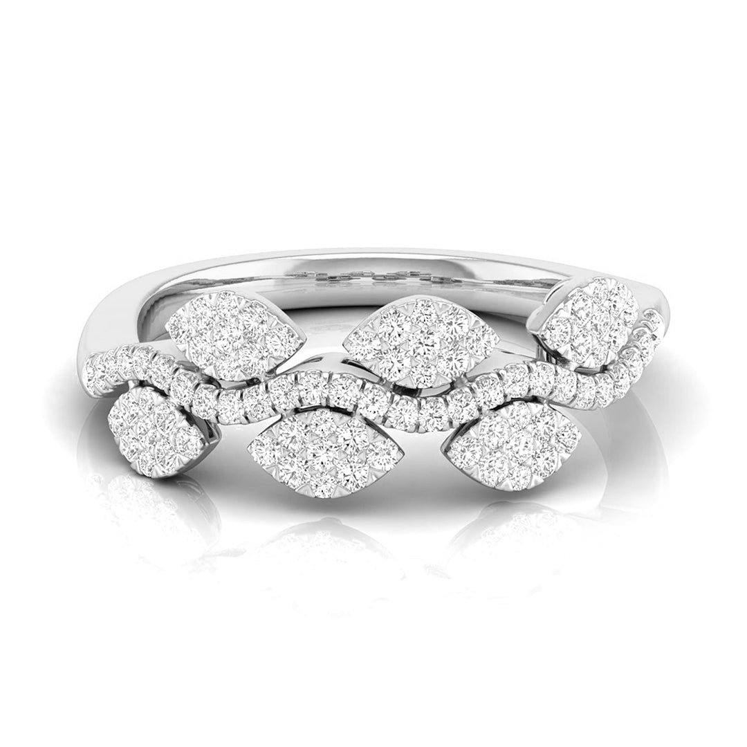 Inspired by nature’s delicate beauty, this ring features a graceful arrangement of marquise-shaped diamond clusters resembling petals, linked together in a flowing, organic design. A line of pavé-set diamonds elegantly curves through the center, adding a sense of fluidity and sparkle to the piece. Perfect for nature lovers or those who appreciate unique artistry, this ring brings together elegance and charm. Whether worn as a statement piece or to complement other jewelry, its enchanting design is sure to captivate attention and evoke a sense of timeless beauty.