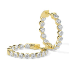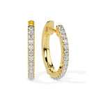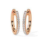 These elegant hoop earrings are lined with sparkling diamonds, creating a refined yet striking design. Perfect for adding a touch of sophistication to any outfit, their minimalist style ensures timeless versatility, ideal for both casual and formal occasions.