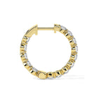 These timeless hoop earrings feature a continuous row of round-cut diamonds set on both the inner and outer sides, ensuring maximum brilliance from every angle. The perfectly aligned stones provide a seamless sparkle, creating an elegant and refined look. With a secure clasp for a comfortable fit, these earrings are perfect for elevating both everyday and formal outfits. The classic hoop design combined with the radiant diamonds makes these earrings a must-have for those seeking a luxurious yet versatile accessory.