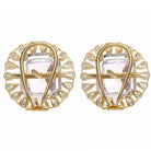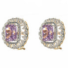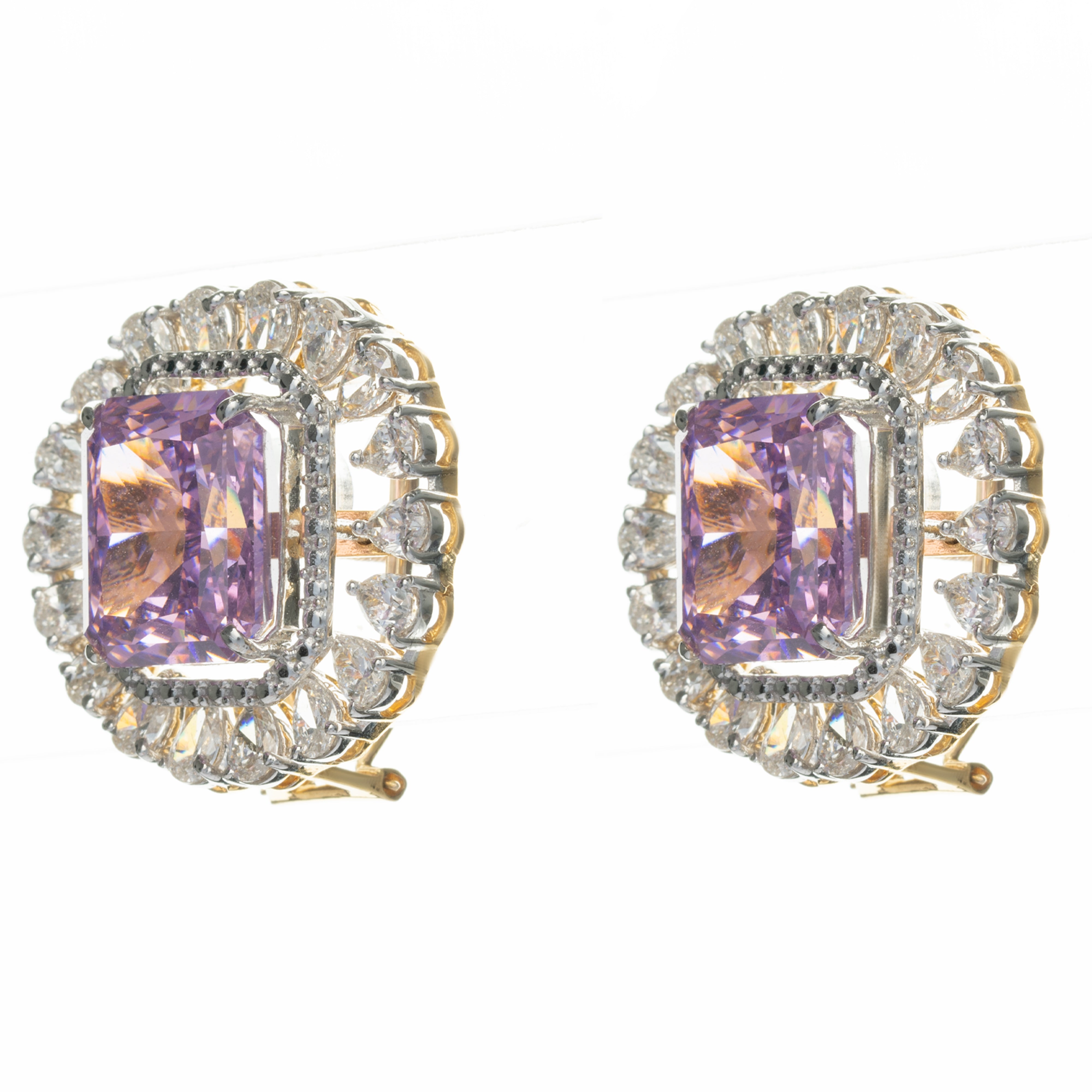 Step into a world of opulence with our Lavish Purple Gemstone Encrusted Earrings. These stunning pieces feature a magnificent purple gemstone at the heart, surrounded by a halo of intricately set diamonds that capture and reflect light with every turn. The unique blend of the vibrant purple hue and the sparkling diamonds set in a lustrous gold frame makes these earrings a standout accessory for any special occasion. Perfect for those who appreciate elegance and a touch of royal charm in their jewelry collection.