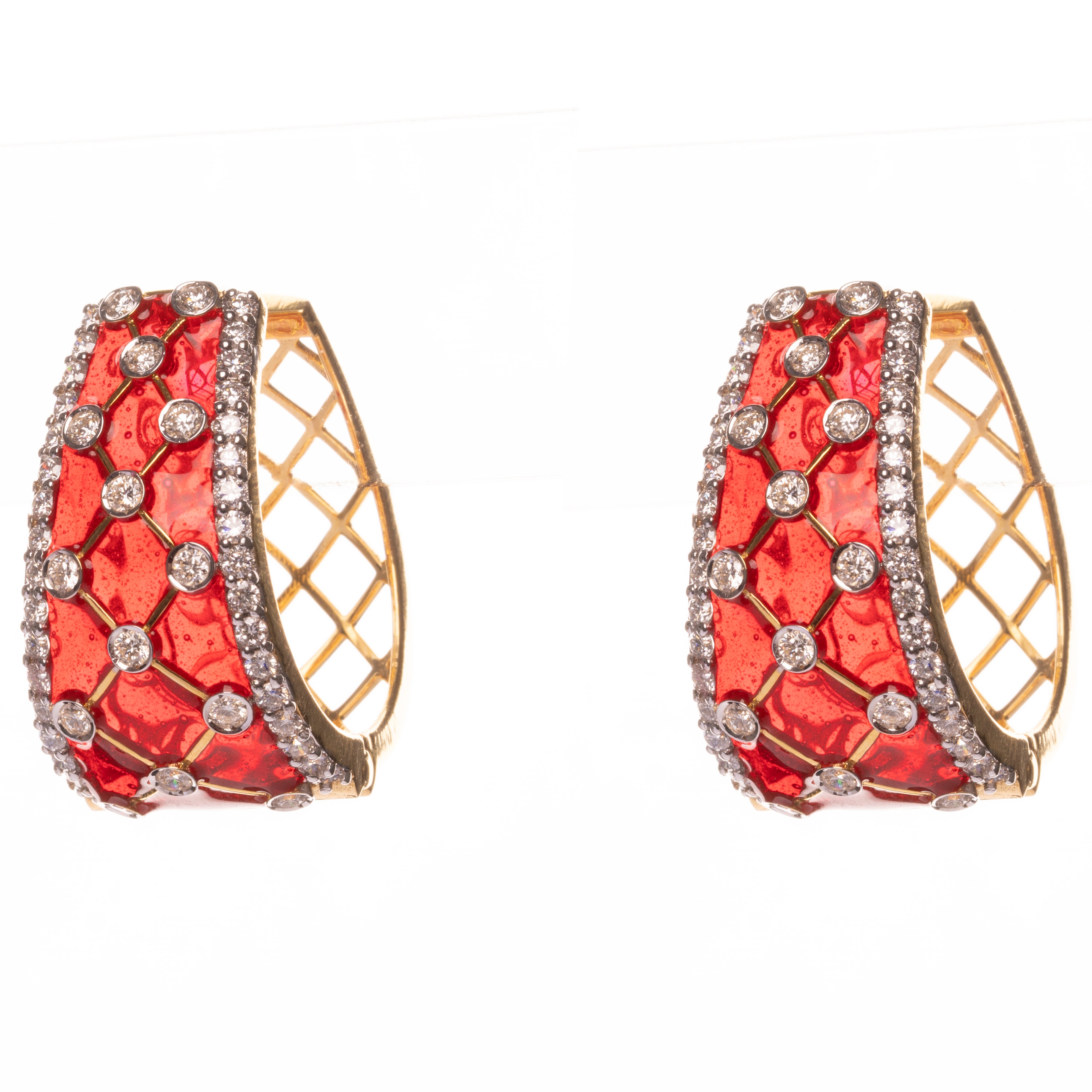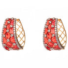 These exquisite hoop earrings bring a touch of elegance and vibrancy to any ensemble. Featuring a beautifully textured mosaic design adorned with shimmering stones, these earrings capture the light from every angle. The intricate lattice work on the inner design adds a unique twist, making them a standout choice for any occasion. Embrace timeless style and sophisticated charm with these dazzling hoops.