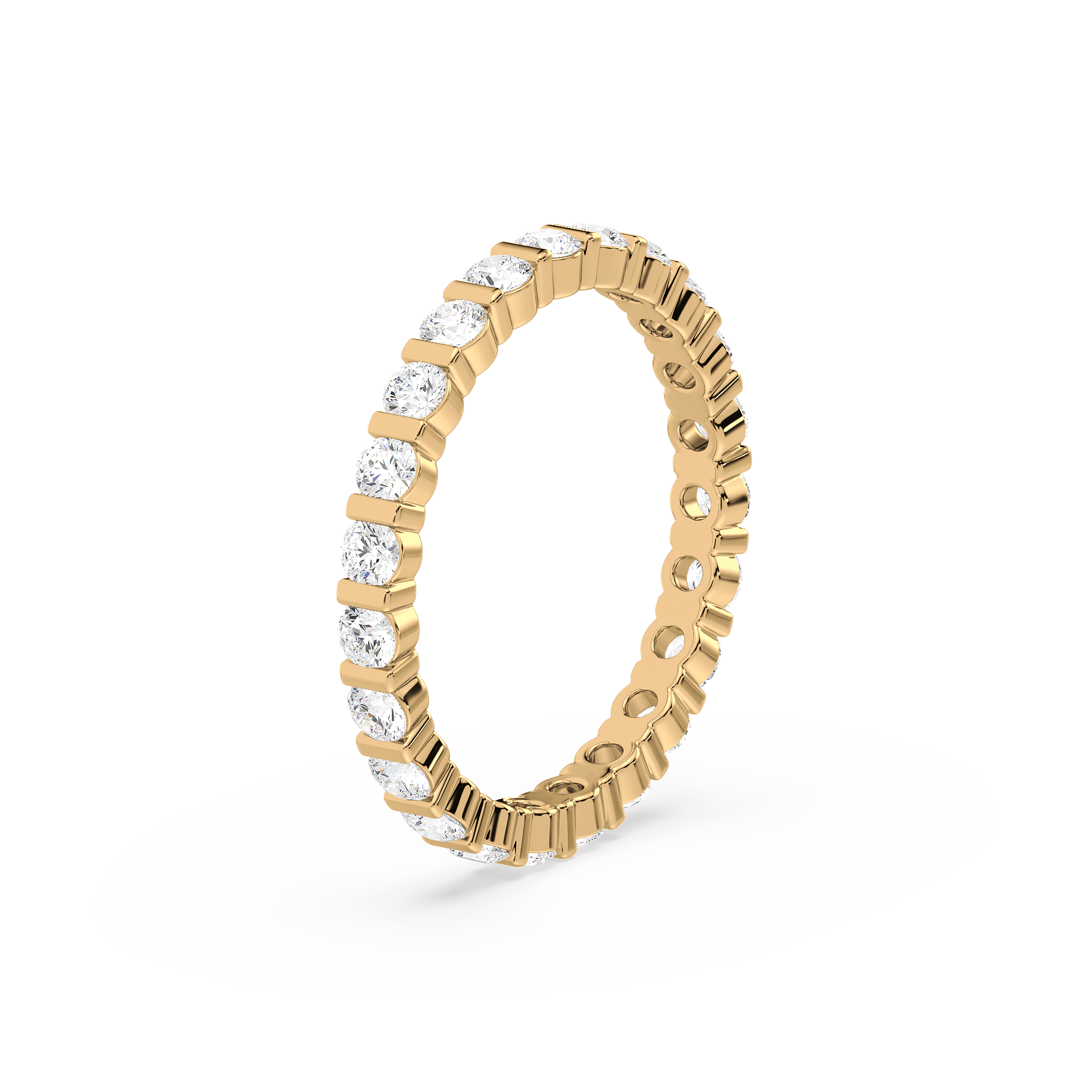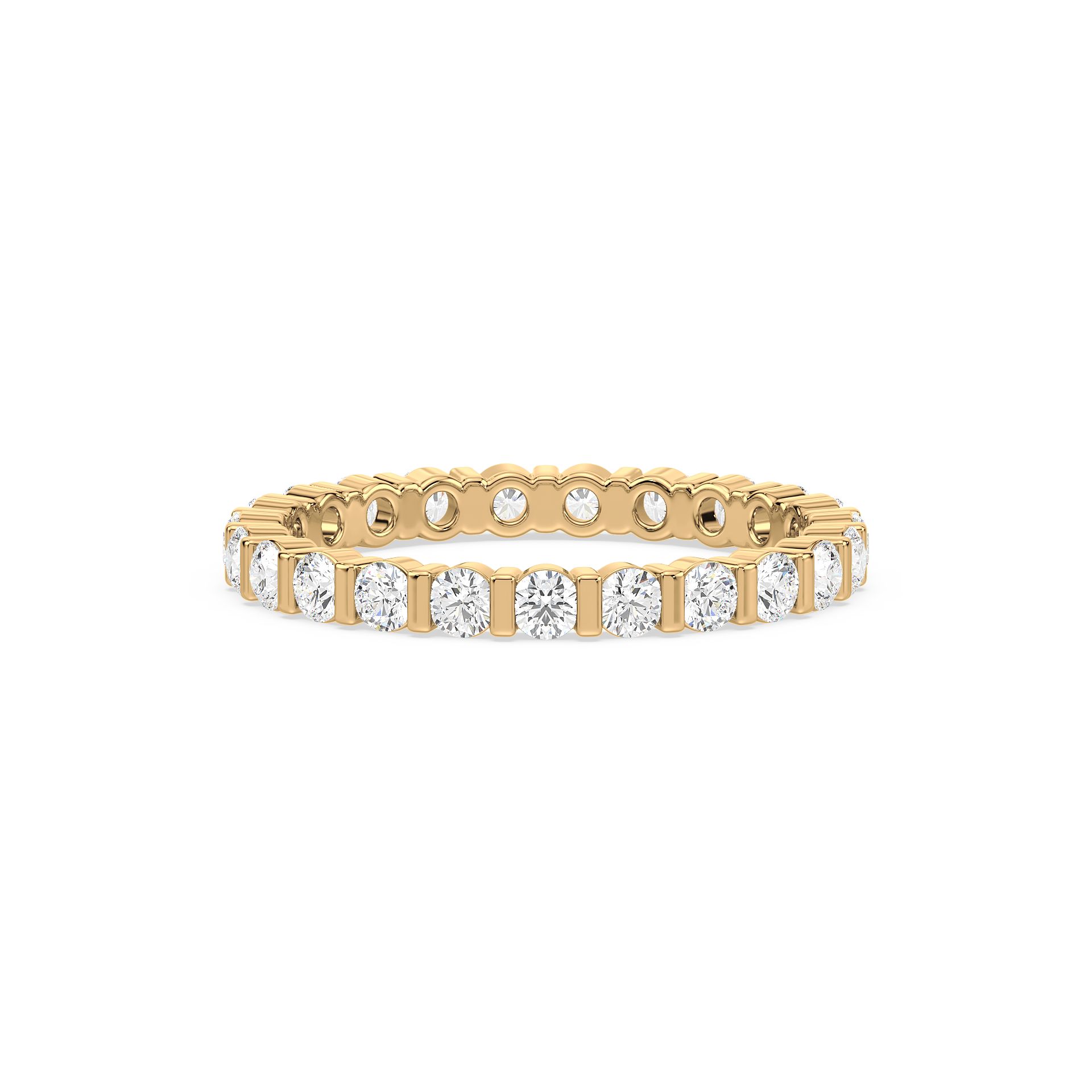 This classic prong-set eternity ring exudes elegance with its continuous line of sparkling stones encircling the band. Each stone is securely held in place by prongs, allowing maximum light to pass through for unparalleled brilliance. Perfect for symbolizing everlasting love and commitment, this ring is an ideal choice for special occasions or as a timeless addition to your everyday style. A graceful and versatile piece that embodies sophistication and beauty.