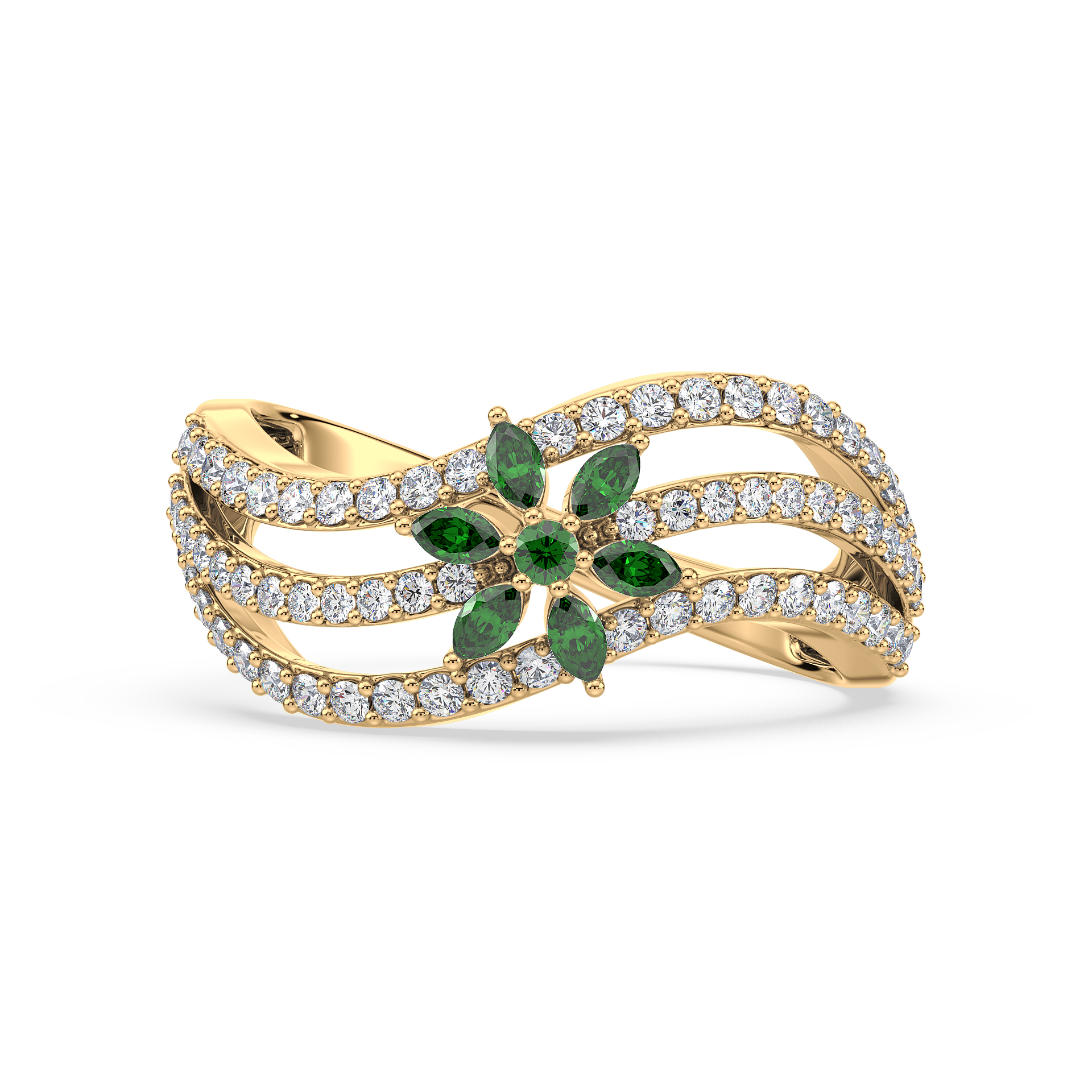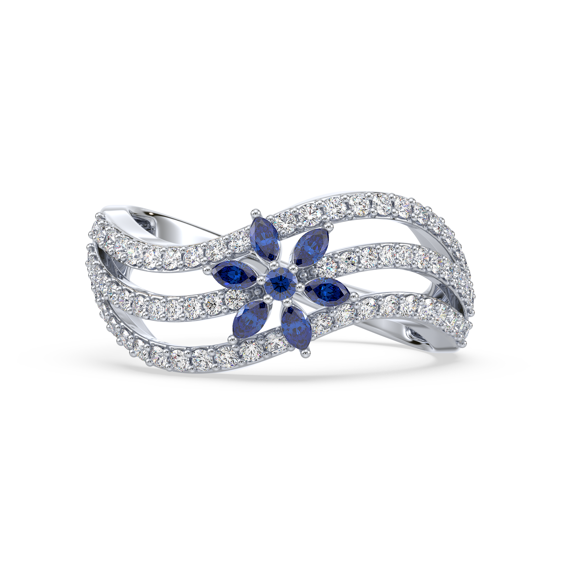 Unveil a delicate harmony of nature-inspired beauty and dazzling sophistication with this stunning floral cluster ring. Featuring an intricate flower motif at its center, adorned with shimmering stones and accentuated by gracefully curved bands, this piece is designed to captivate. Perfect for special occasions or as a unique statement of style, this ring adds a touch of timeless elegance to your collection.