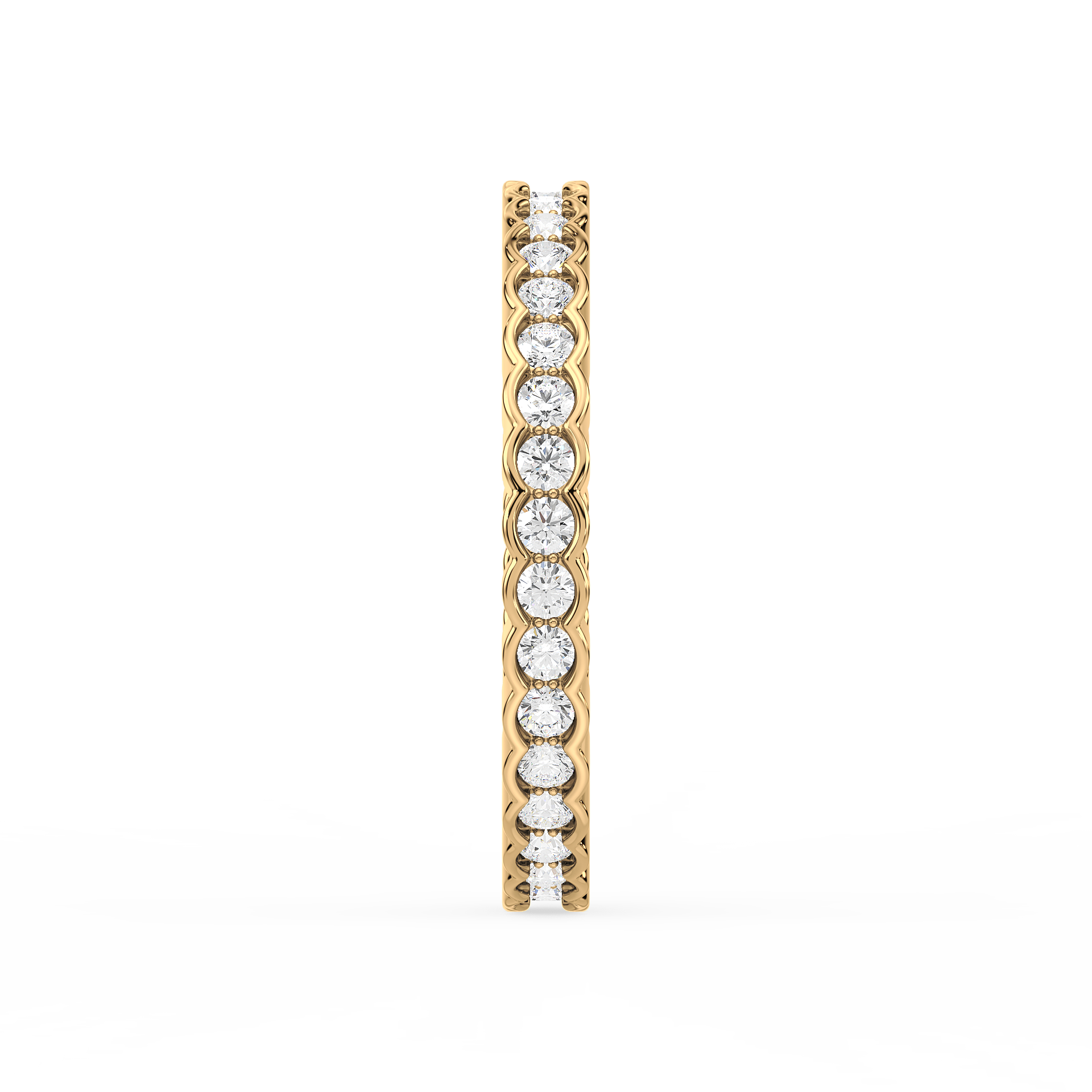 Add a touch of elegance with this scalloped bezel-set eternity ring, featuring a continuous row of shimmering stones set within delicate scalloped bezels. The unique design offers a graceful twist on the classic eternity band, providing both security and style with its intricate setting. Ideal for special occasions or as a beautiful addition to your everyday wear, this ring is a perfect symbol of everlasting beauty and refined sophistication. A timeless piece for those who appreciate artistry in fine jewelry.