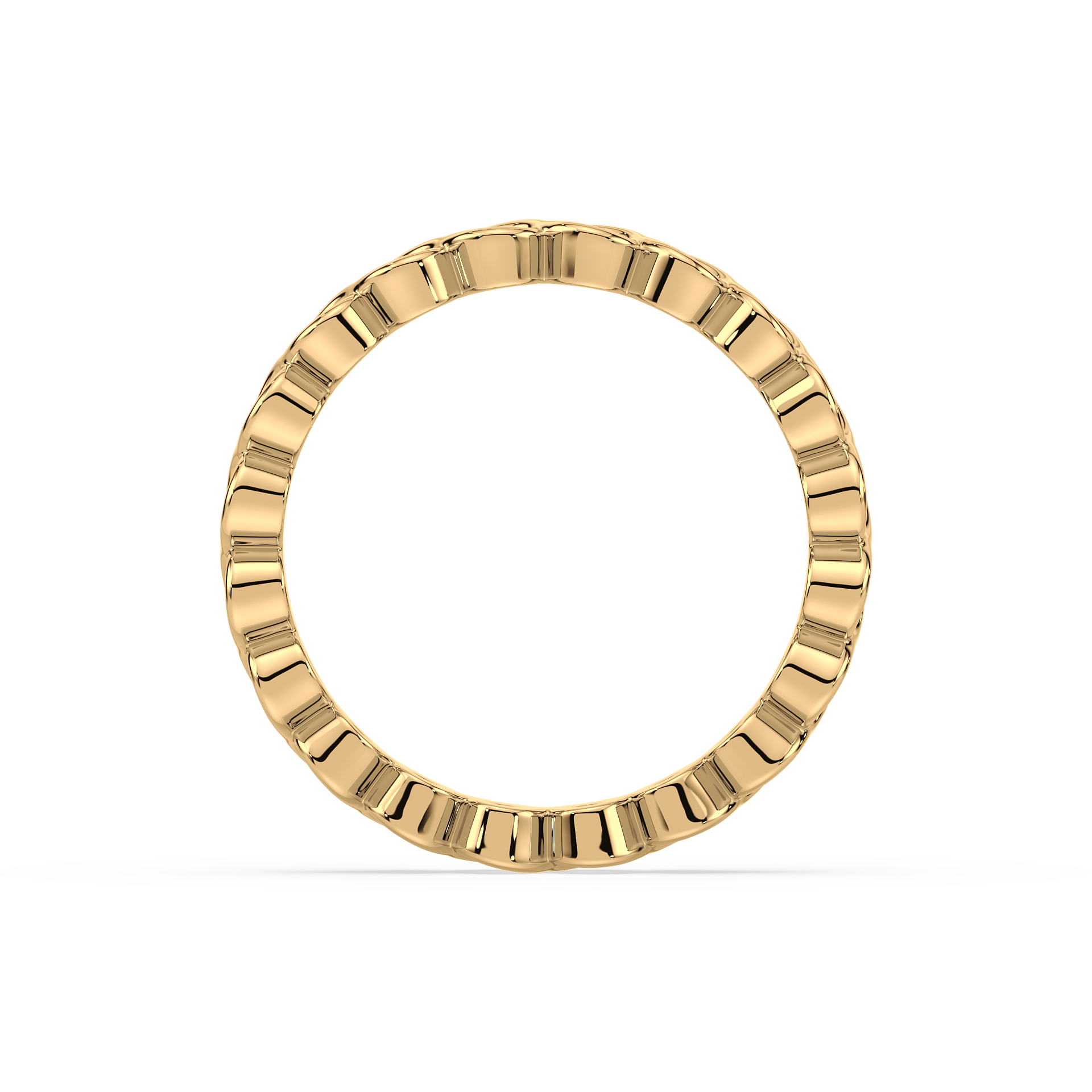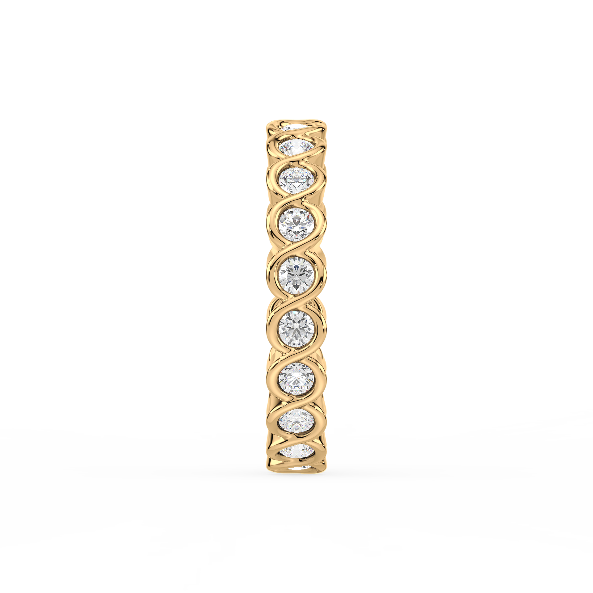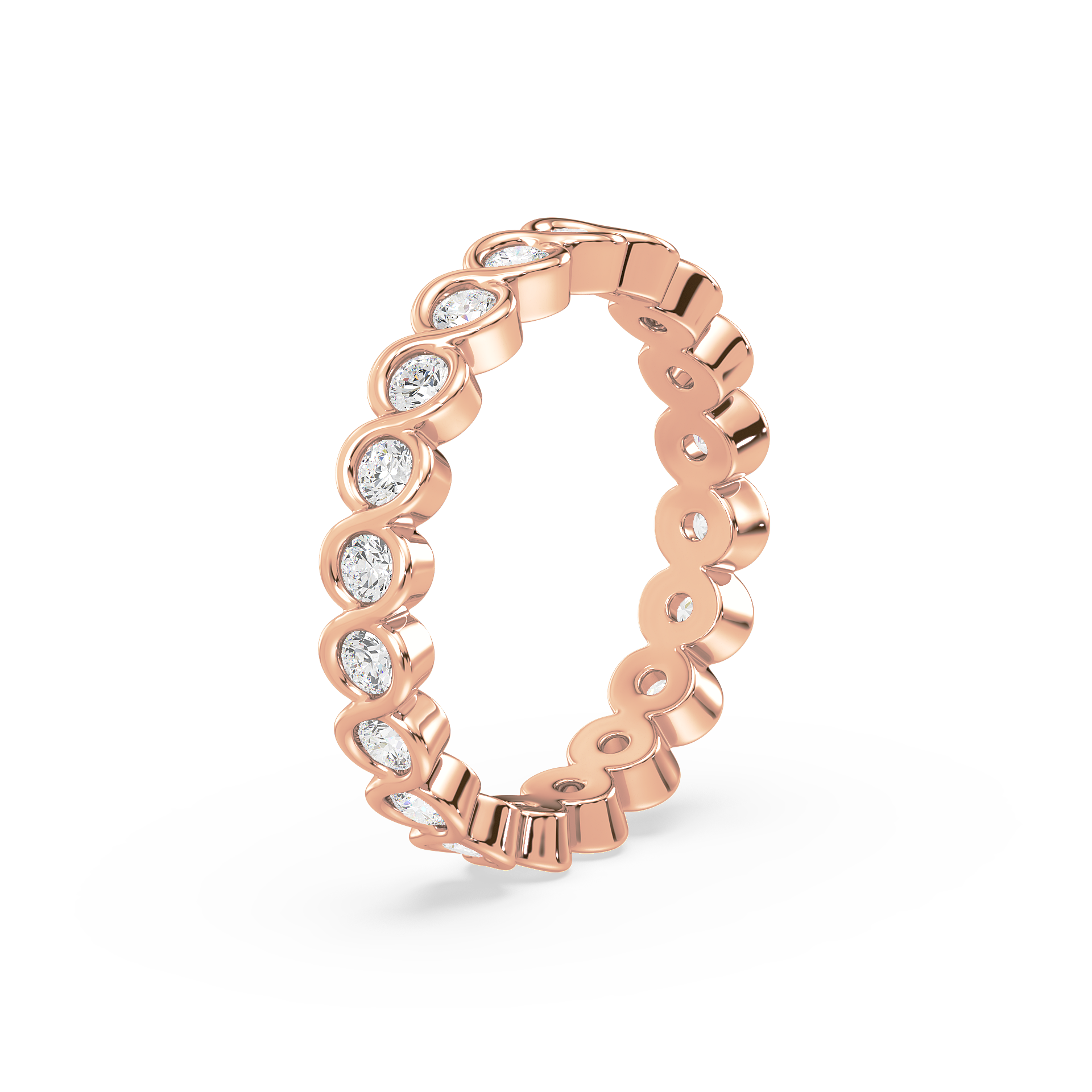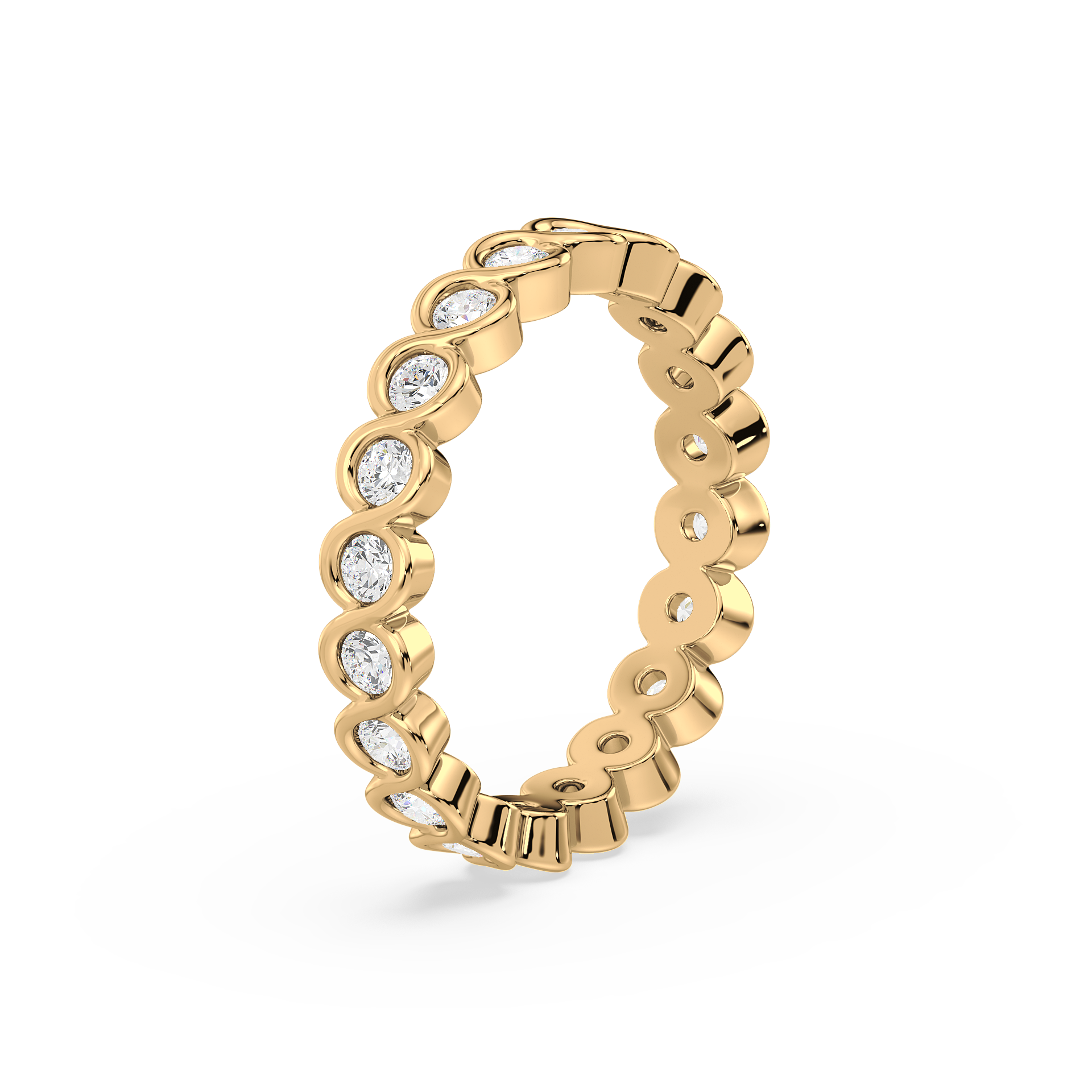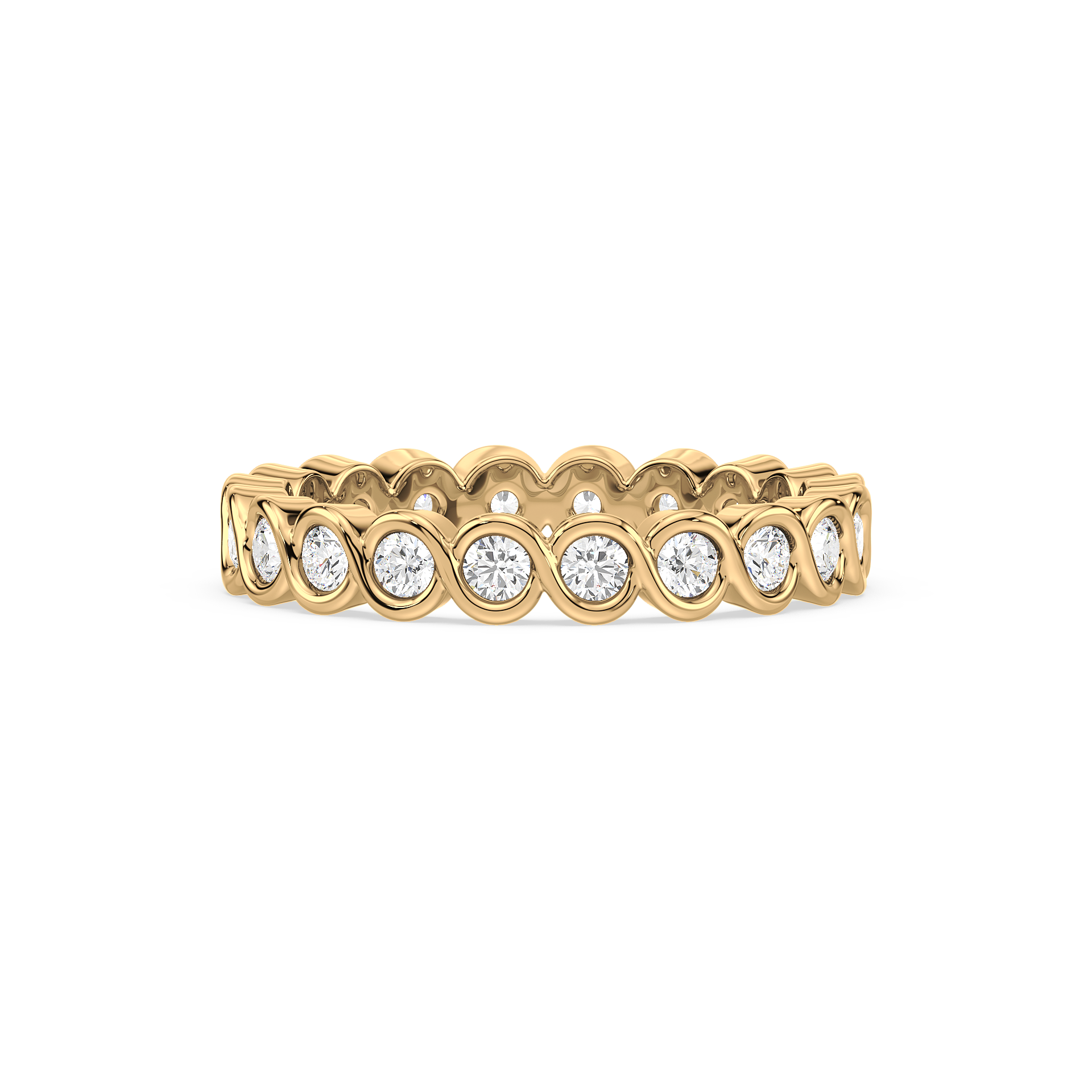 Embrace elegance with this stunning infinity wave eternity ring, featuring a unique wave-like design that flows continuously around the band. Each stone is bezel-set within each curve, creating a captivating rhythm of sparkle and sophistication. This ring symbolizes endless love and connection, making it an ideal choice for special occasions or as a daily statement of style. A graceful and modern piece, perfect for those who appreciate artistry and timeless beauty in fine jewelry.