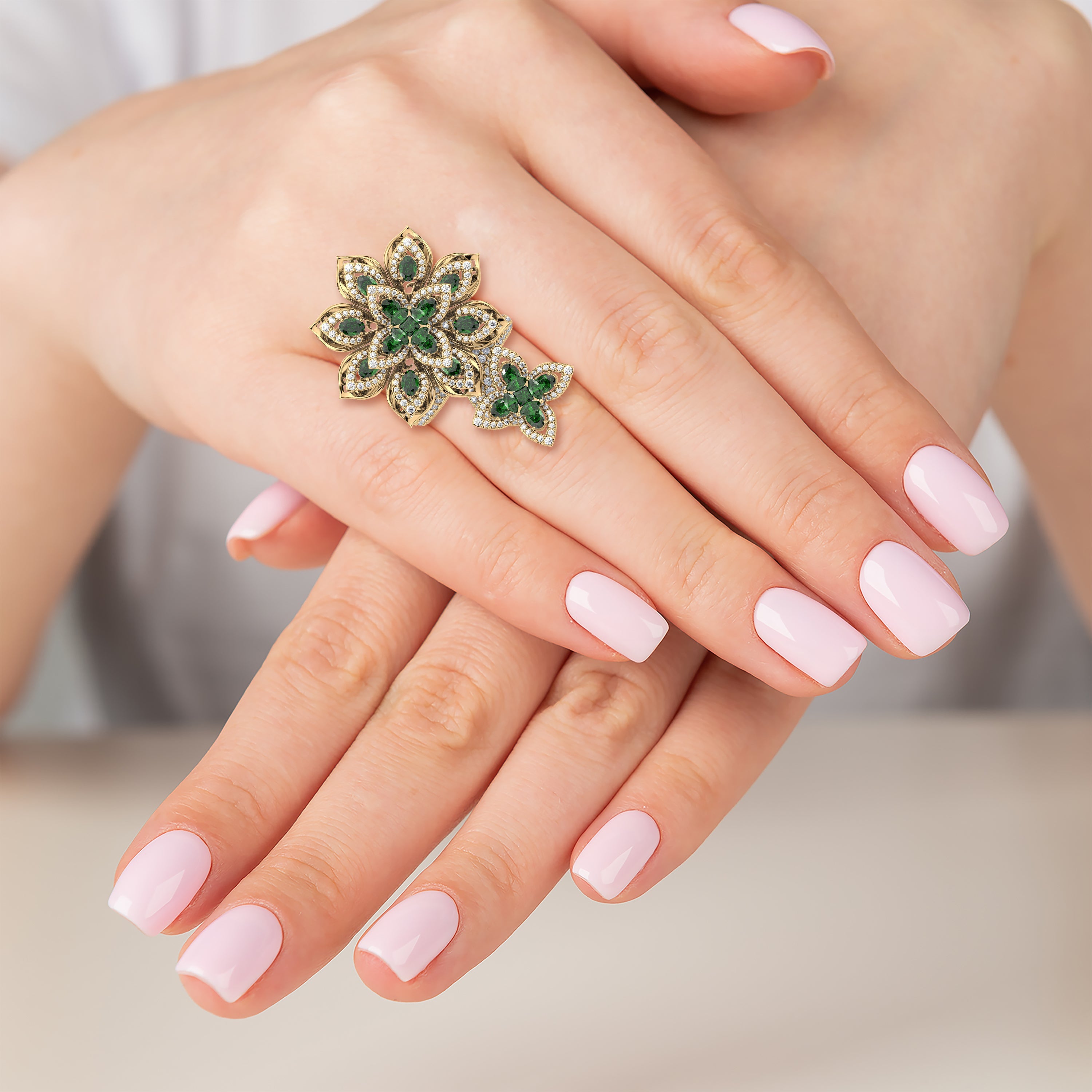 Unleash your inner diva with the Radiant Blossom Cocktail Ring, a statement piece designed to captivate. Featuring an elaborate floral design with meticulously arranged stones, this ring exudes luxury and grace. Perfect for evening galas or festive occasions, it ensures all eyes are on you. A true masterpiece for those who love bold elegance.
