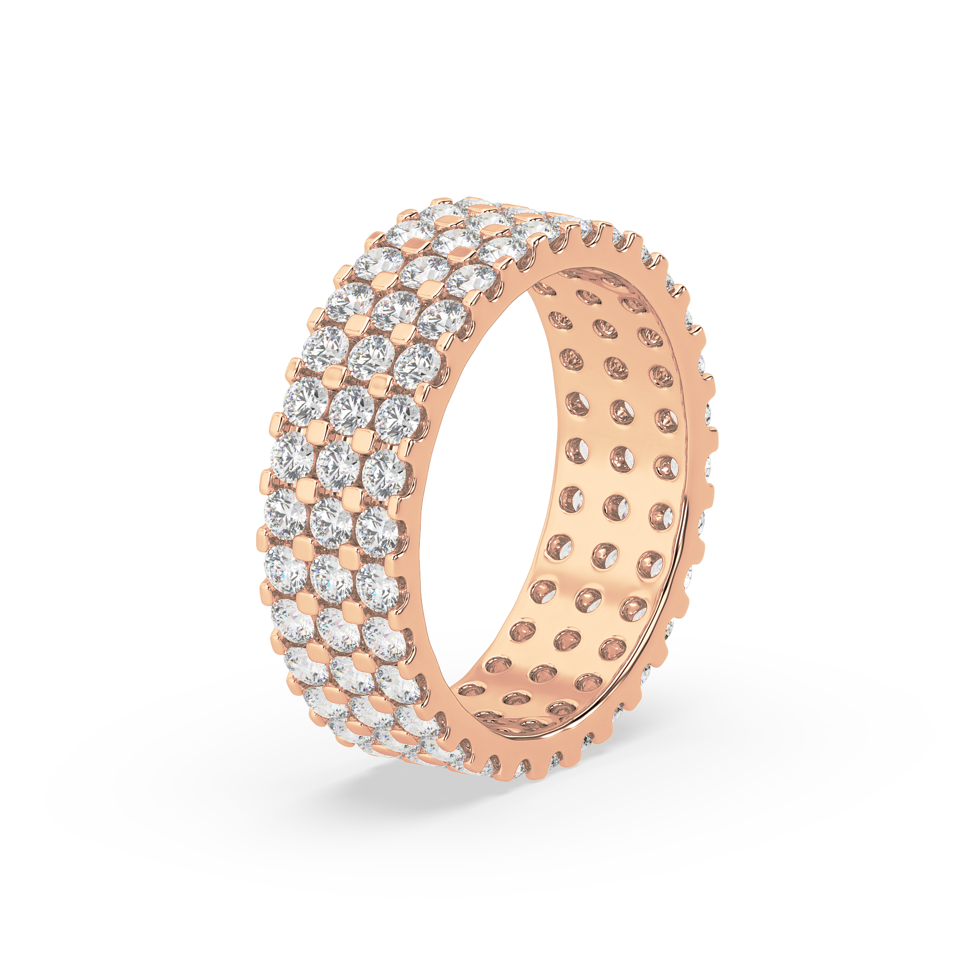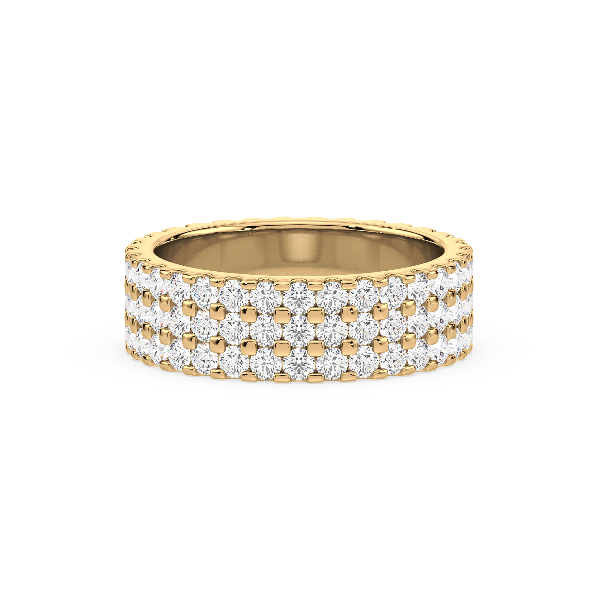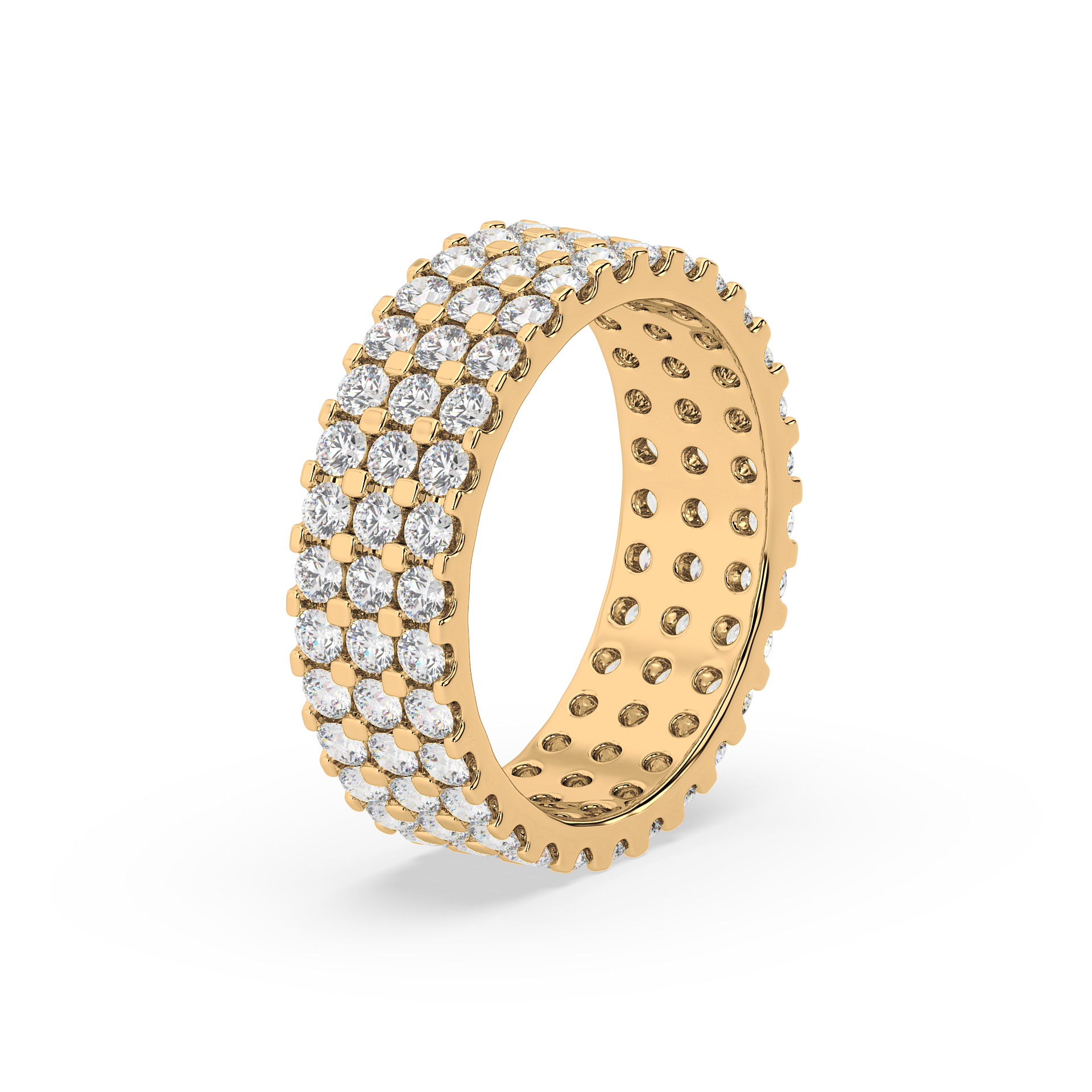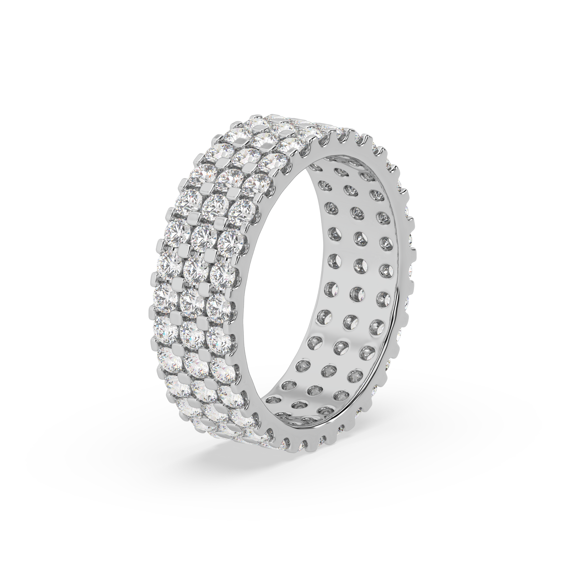 Indulge in timeless elegance with this stunning eternity ring, featuring multiple rows of meticulously set, brilliant stones that encircle the entire ring. Crafted for those who appreciate opulence and sophistication, this ring dazzles with a seamless sparkle from every angle. Perfect for special occasions or as a luxurious everyday statement, this eternity ring symbolizes endless beauty and grace.