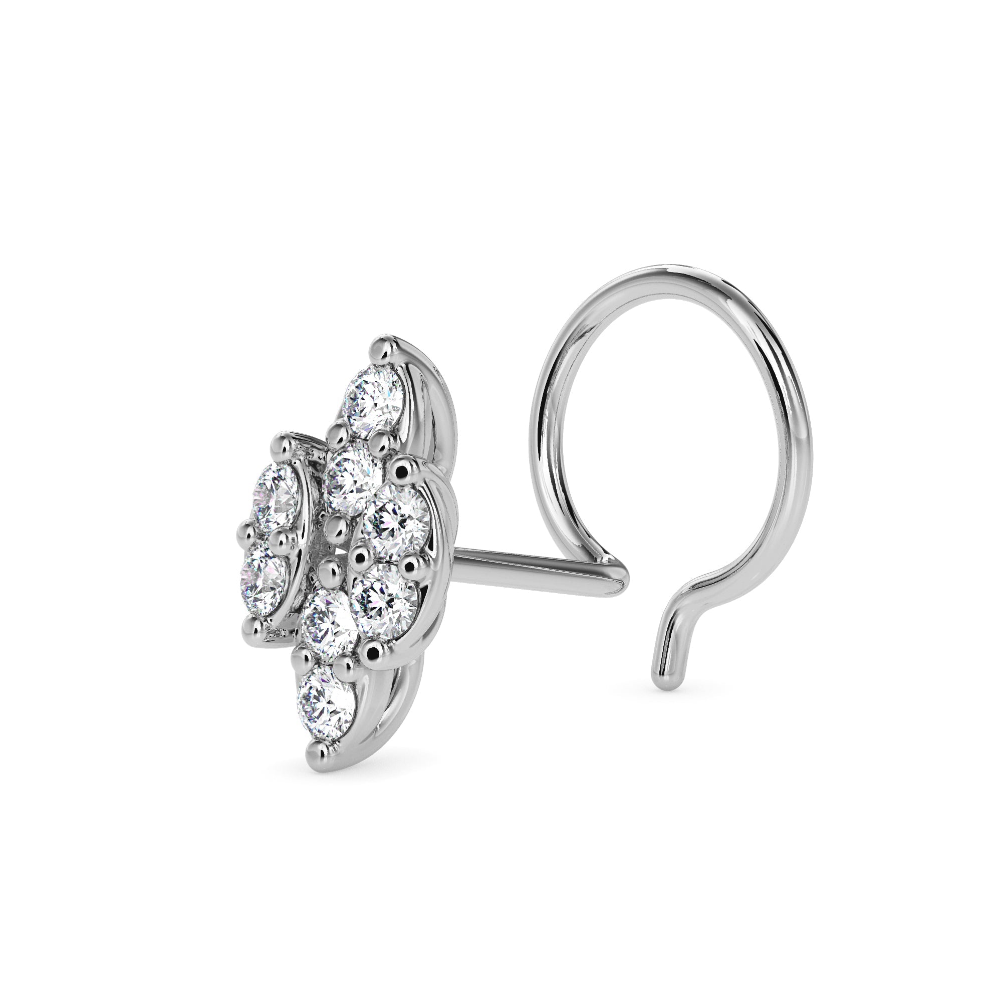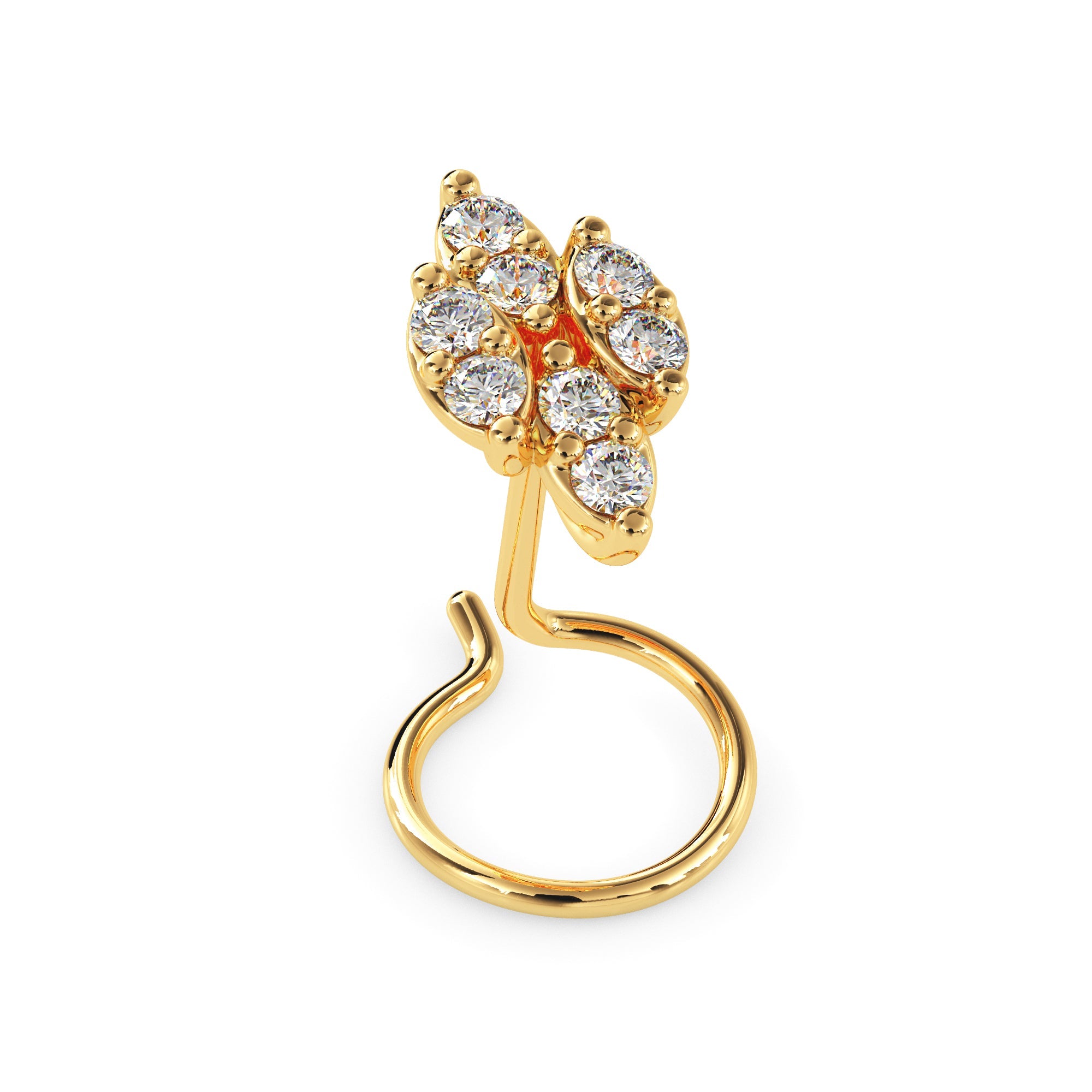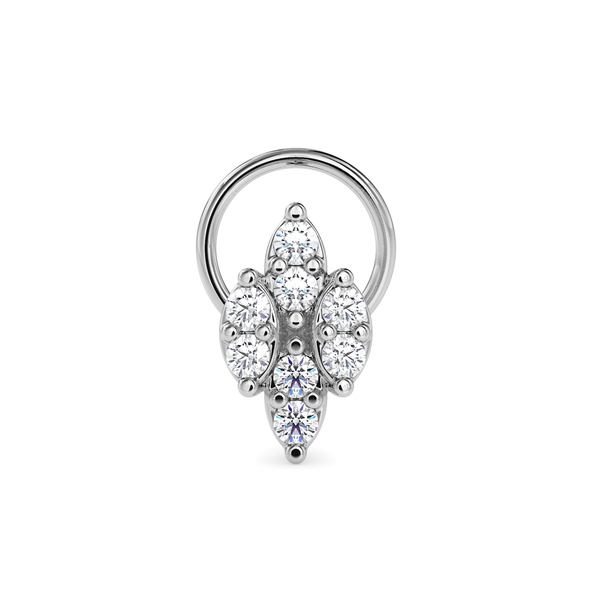 A stunning arrangement of marquise-cut stones forms the center of attention in this elegant nose pin. The unique design adds a touch of sophistication and sparkle, making it a perfect choice for those who appreciate timeless beauty. Ideal for everyday wear or special occasions.