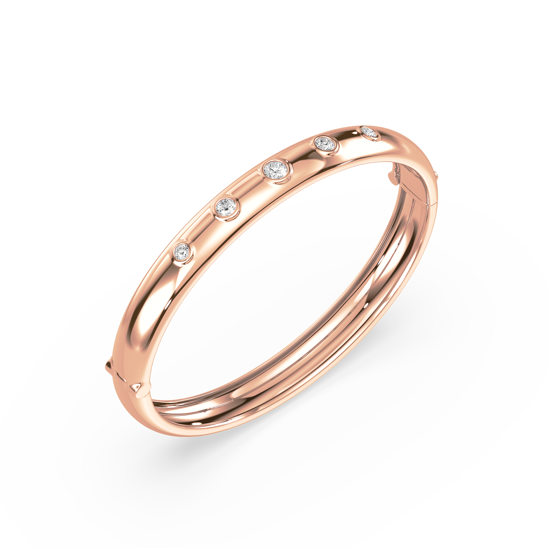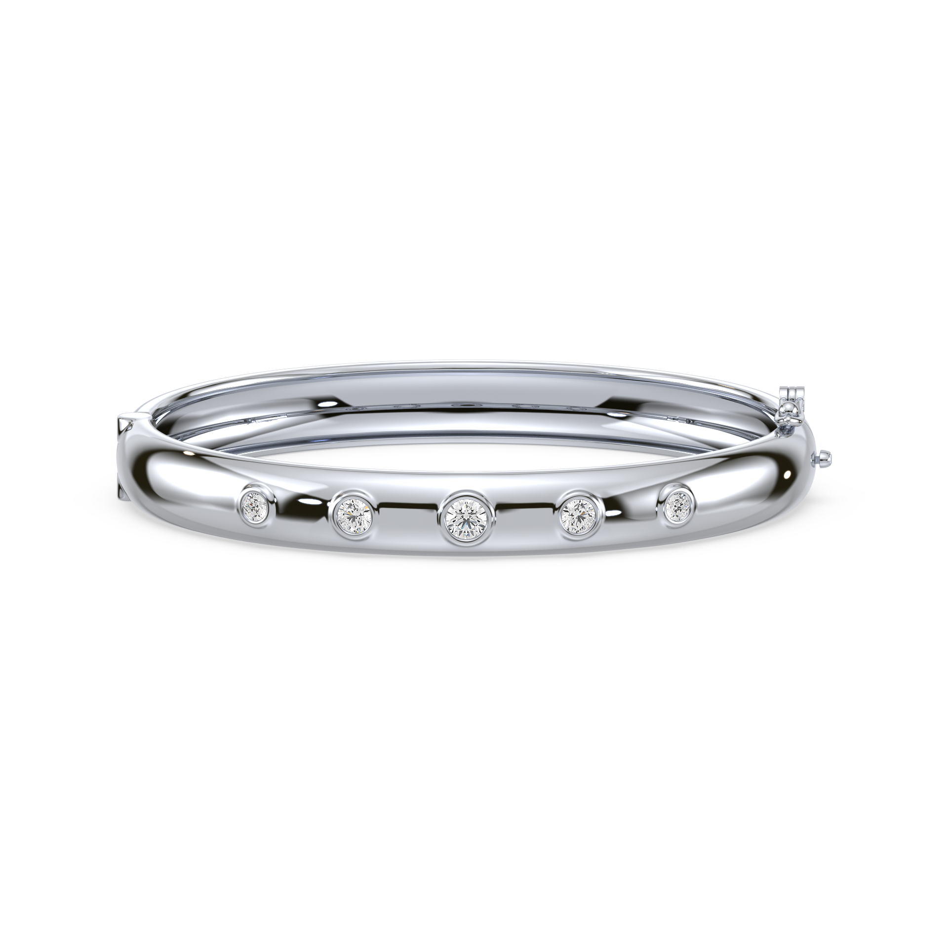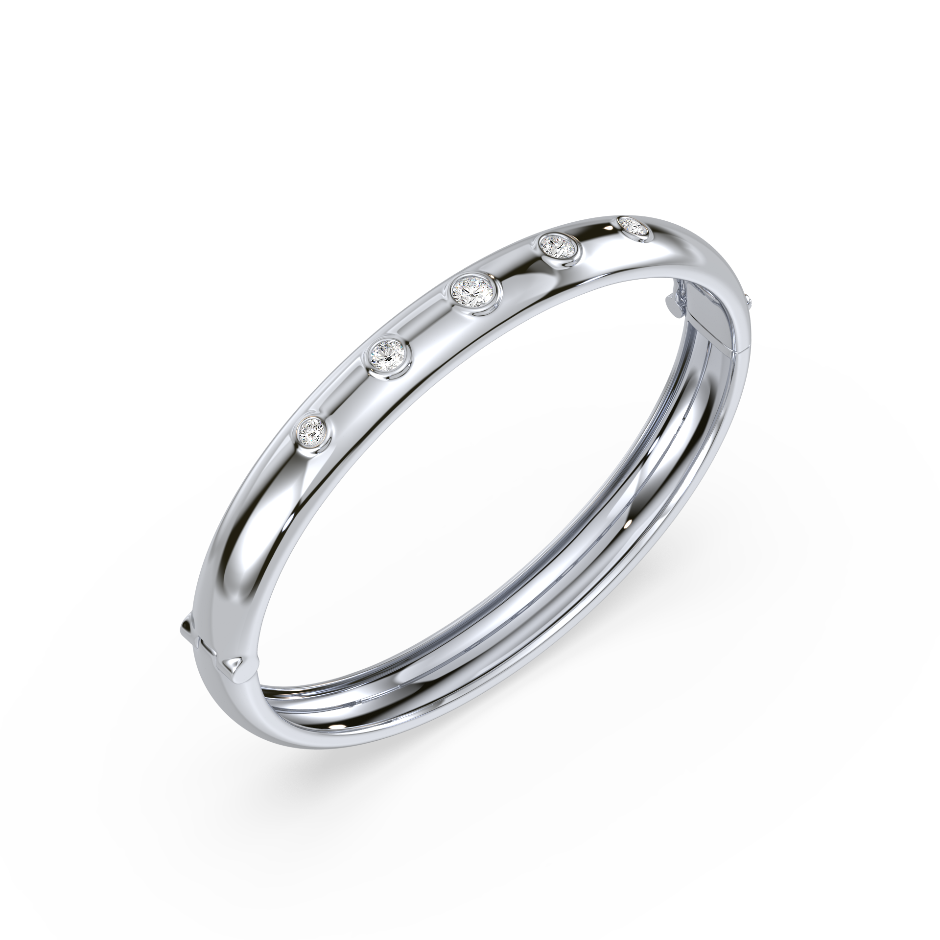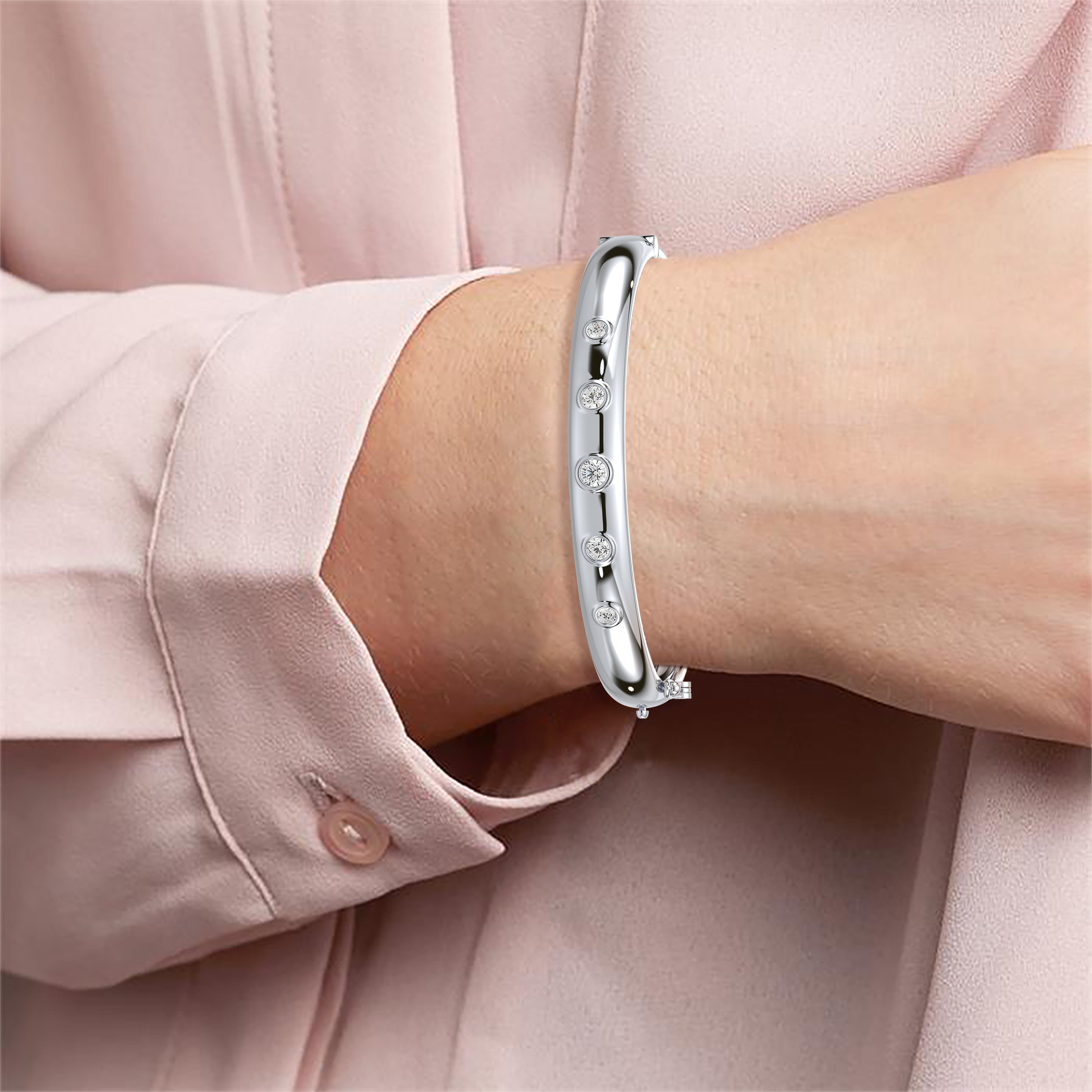 Elevate your style with this sleek and polished bangle featuring evenly spaced shimmering stones for a touch of understated elegance. Its versatile design makes it perfect for daily wear or as a subtle highlight for formal occasions. A timeless accessory for the modern trendsetter.