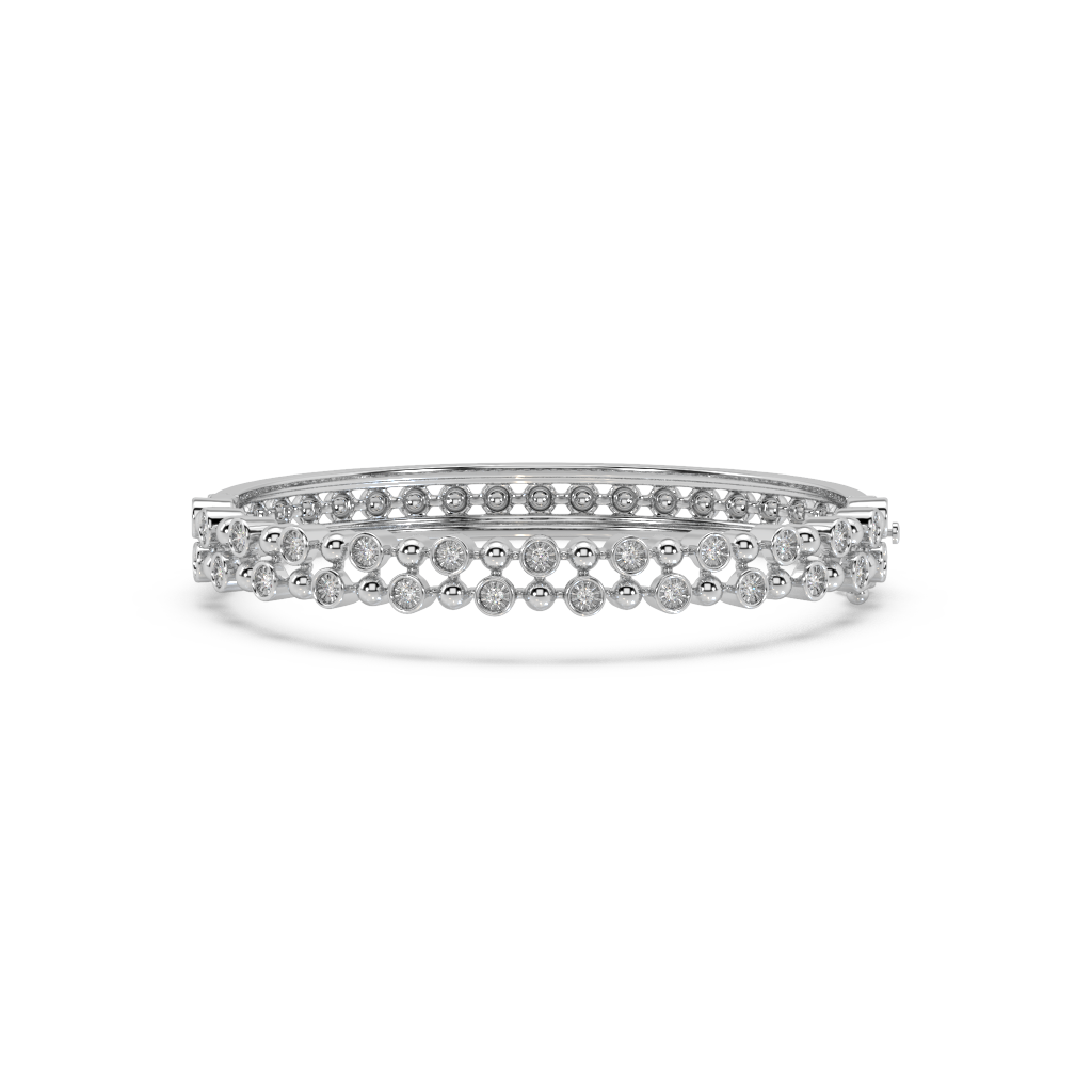 This exquisite bangle features a dual-row design with sparkling stones that create a dazzling effect. Its intricate craftsmanship and refined style make it the perfect addition to your collection, whether for special occasions or elevating your everyday look.