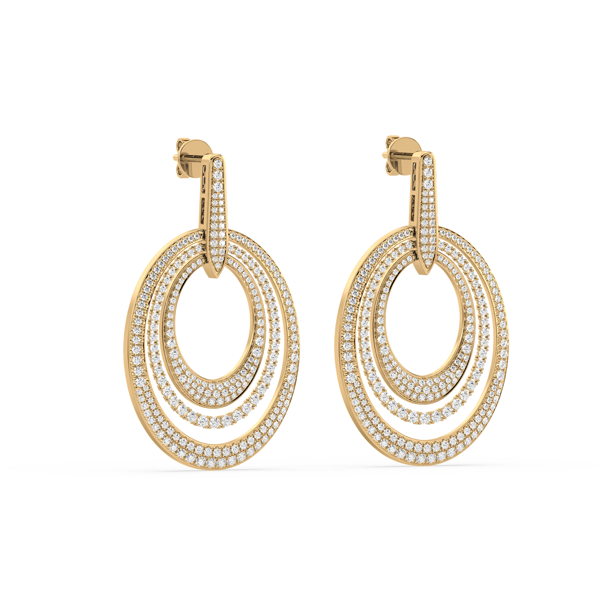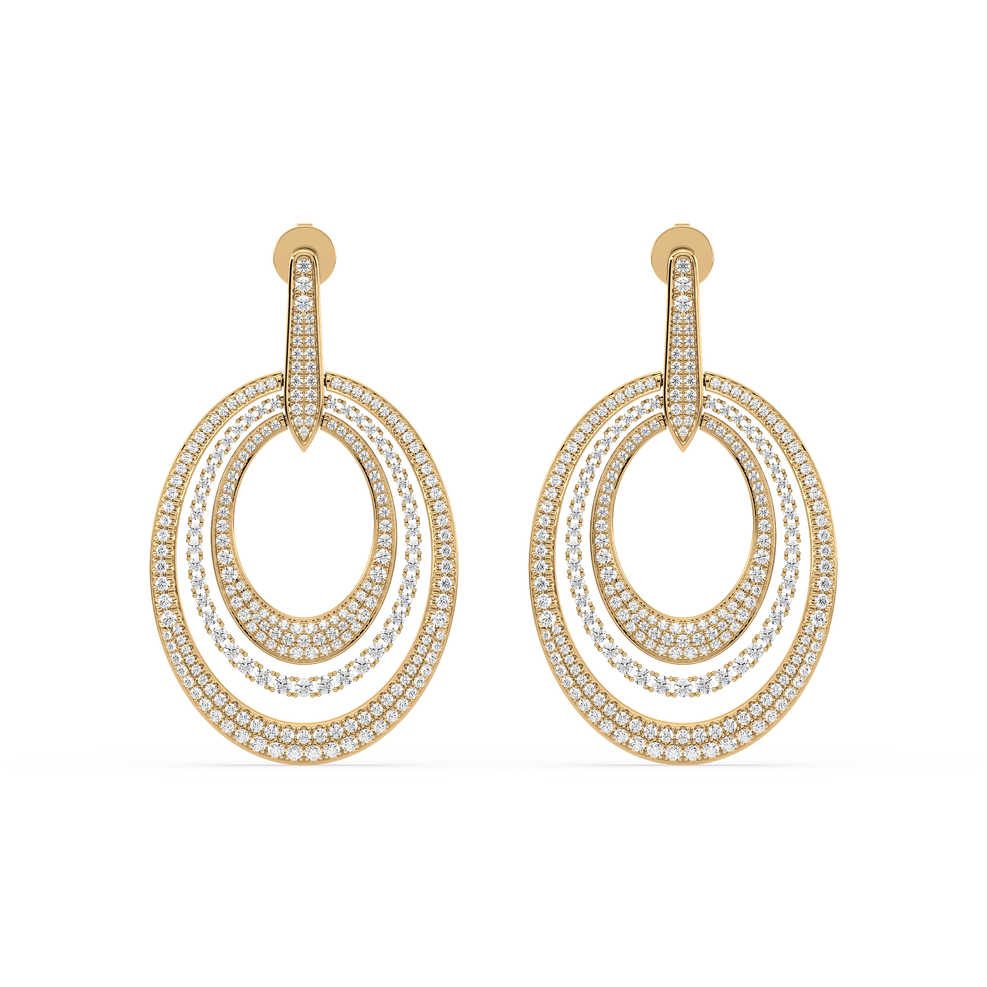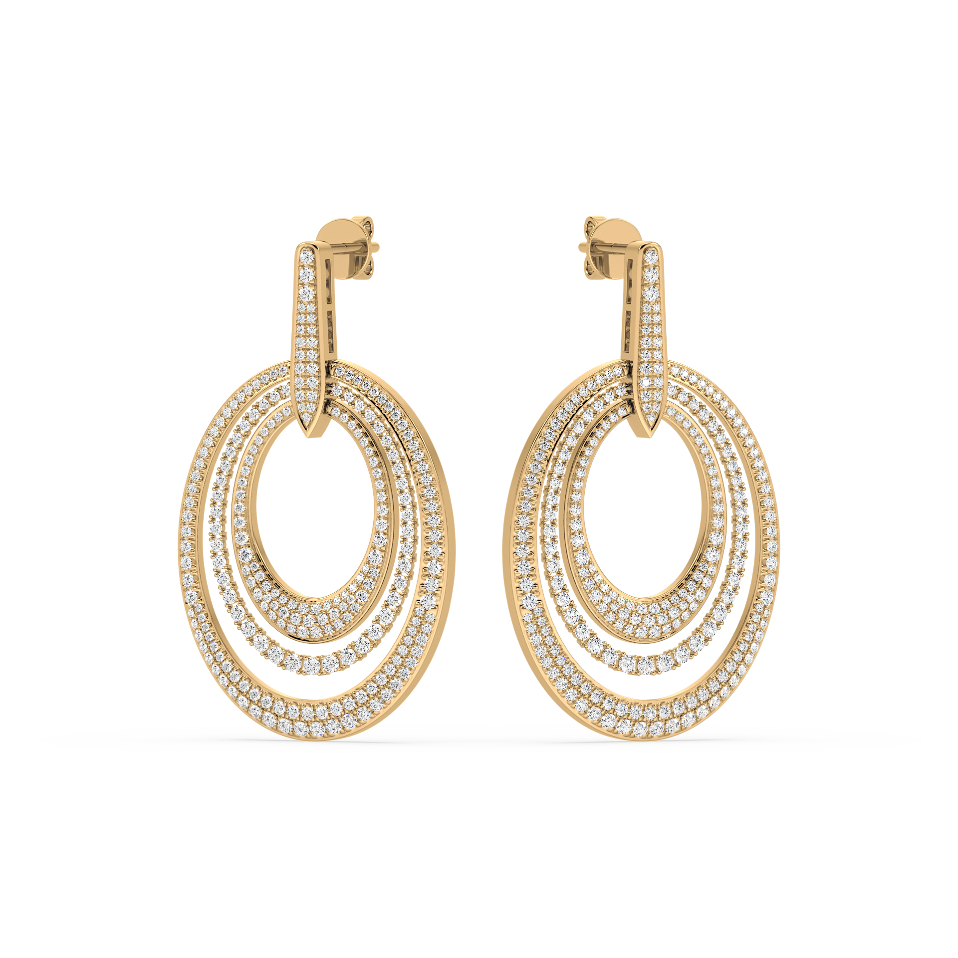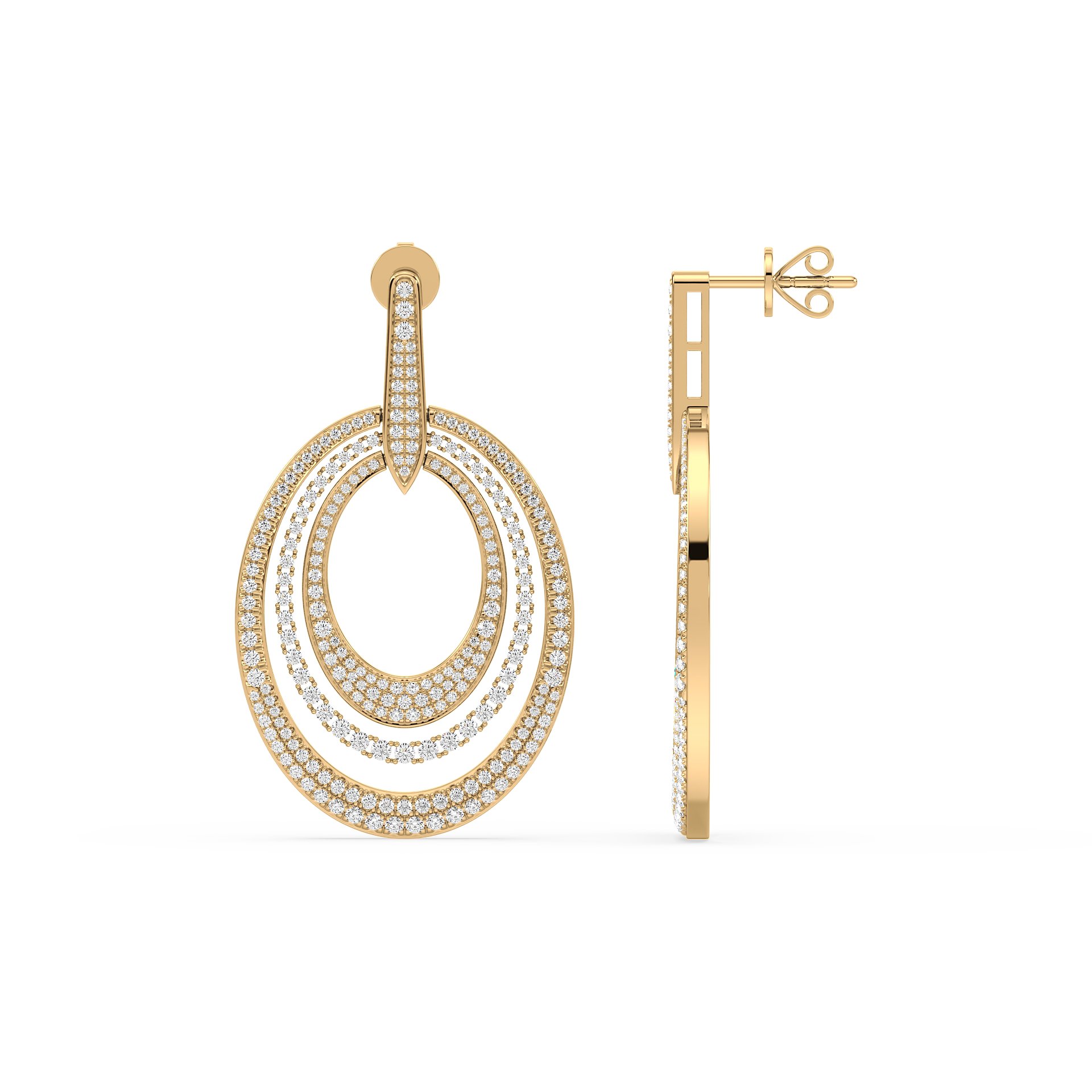 Make a bold statement with these triple oval dangling earrings. Embellished with delicate stones and designed for elegance, these earrings are perfect for weddings, galas, or any special occasion where you want to stand out.
