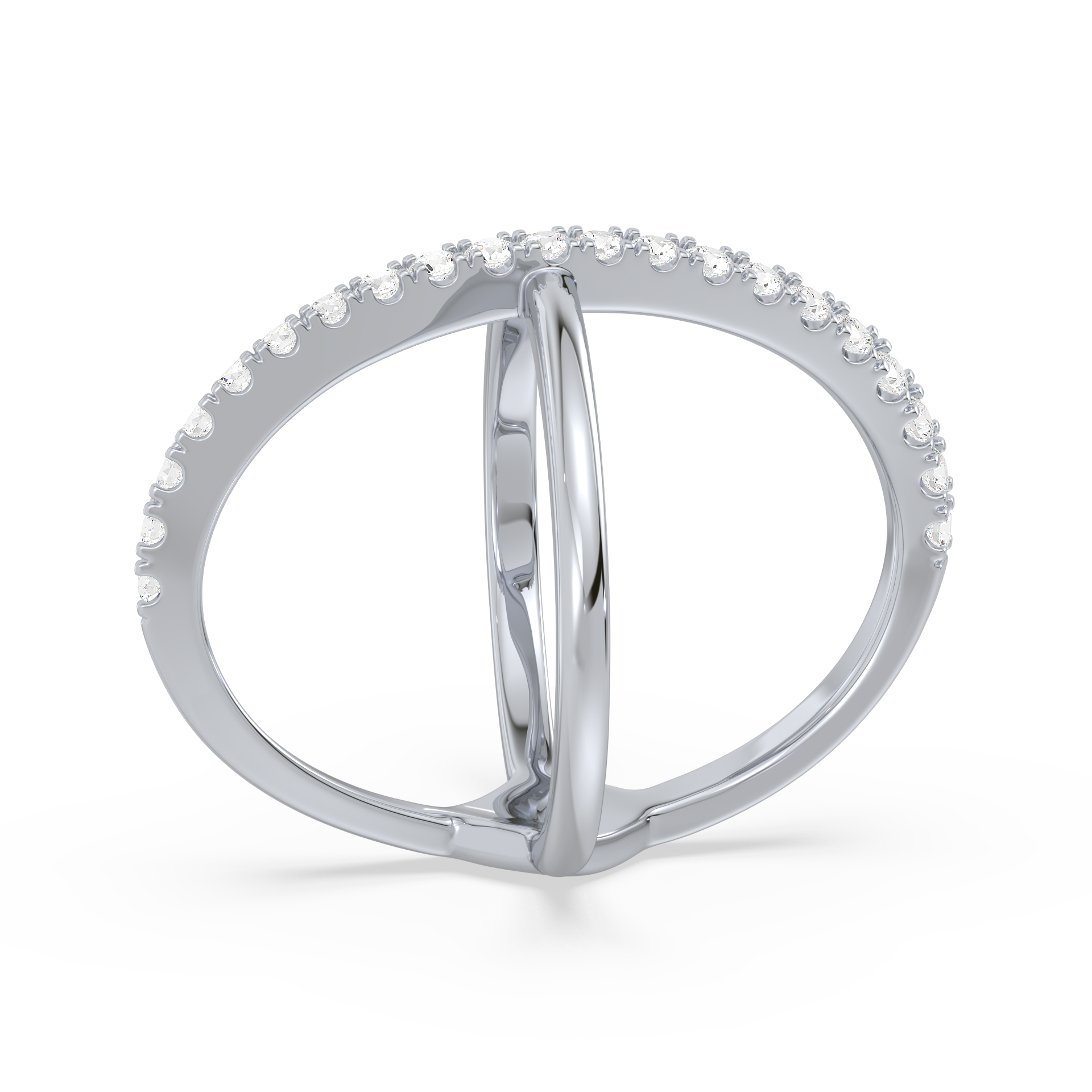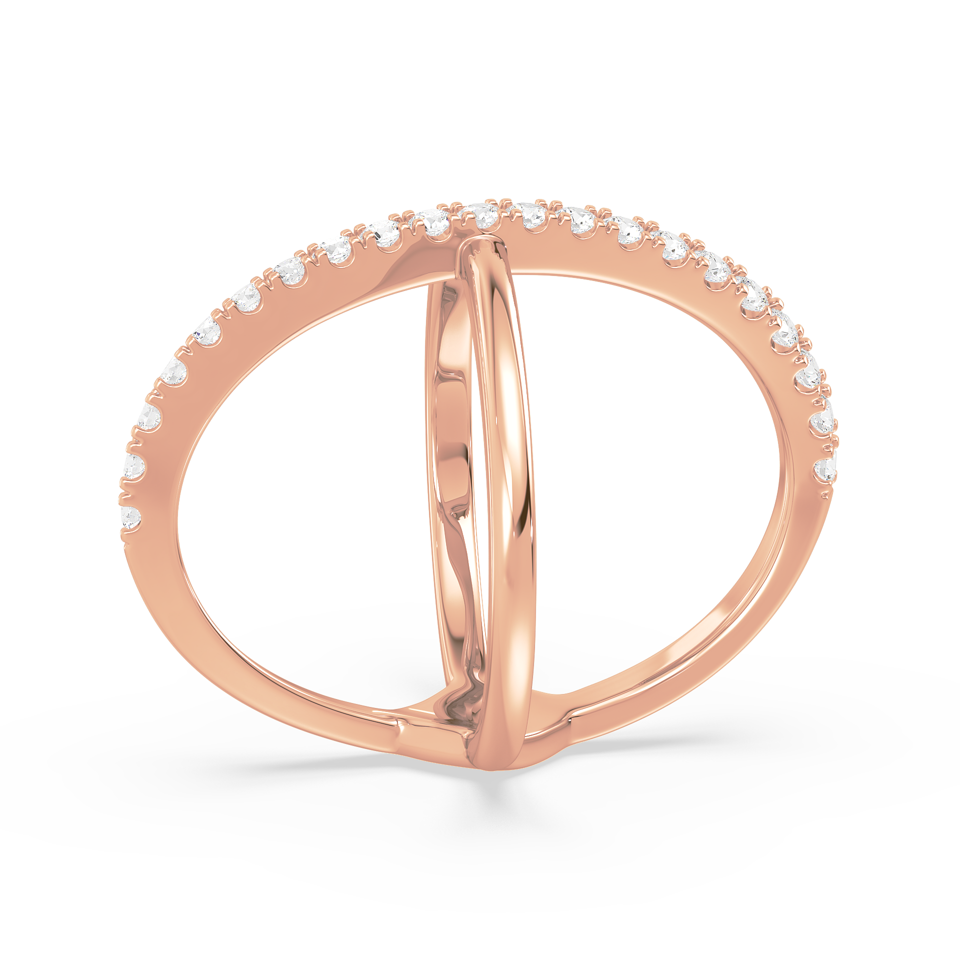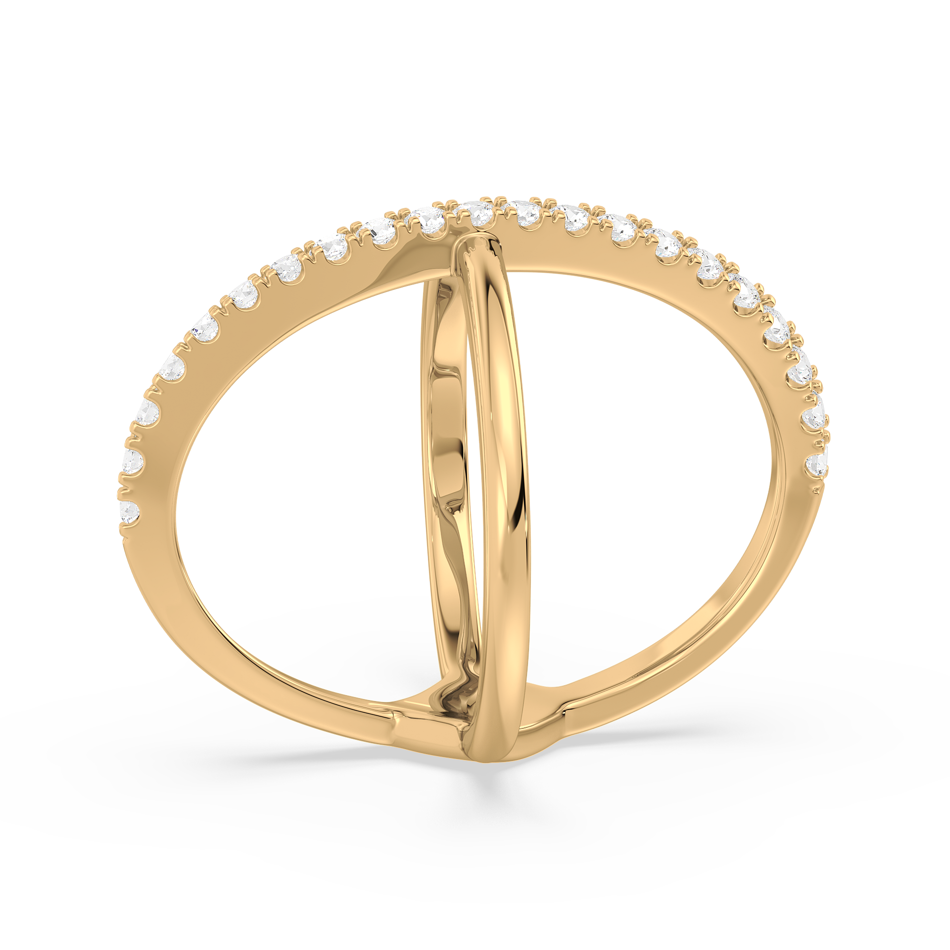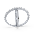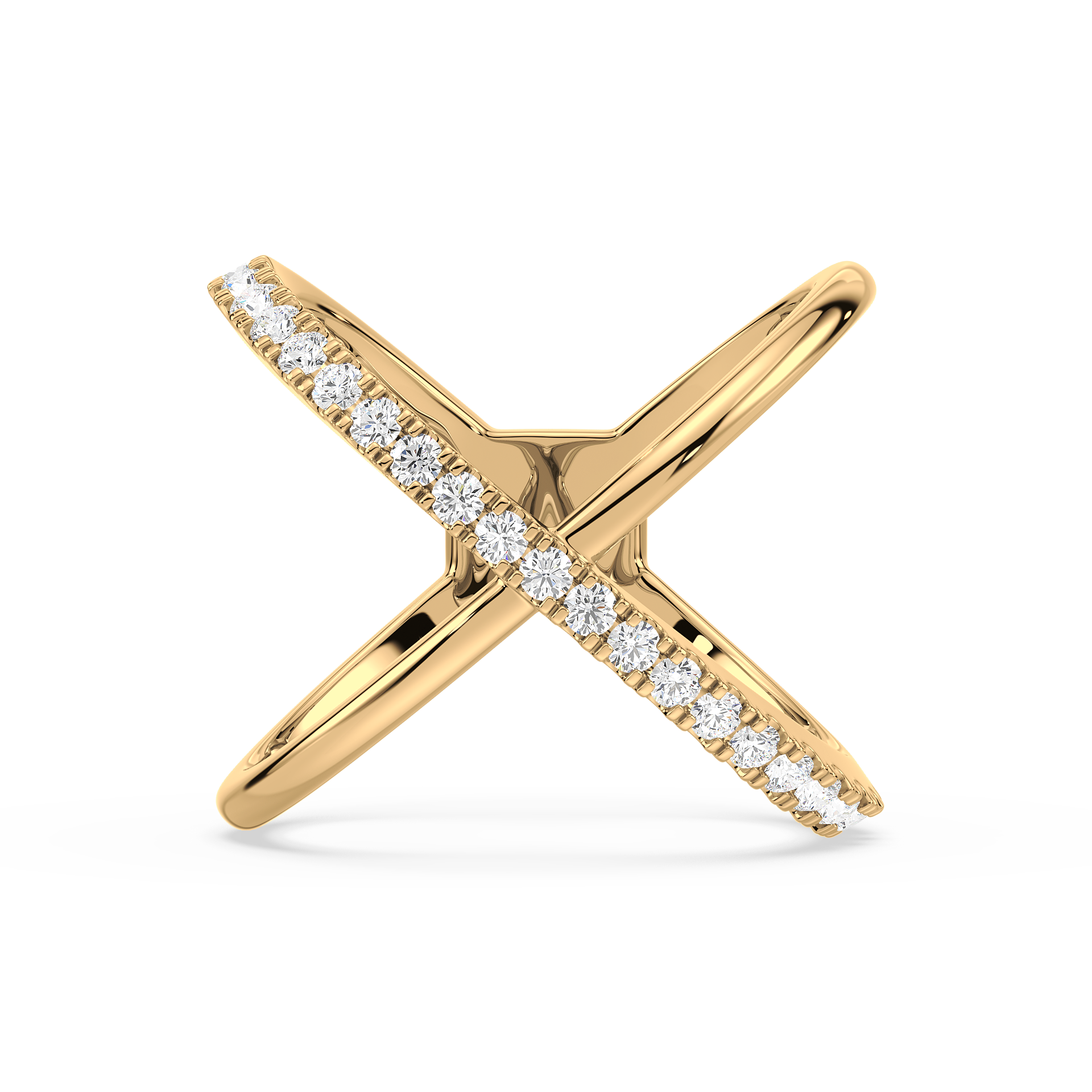 Bold and modern, this criss-cross ring features two intersecting lines adorned with sparkling stones, creating an "X" design that symbolizes strength and unity. Its open design and refined sparkle make it a versatile statement piece, perfect for adding a contemporary edge to any outfit. Embrace the elegance of minimalism with this unique and stylish ring.