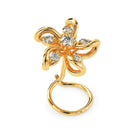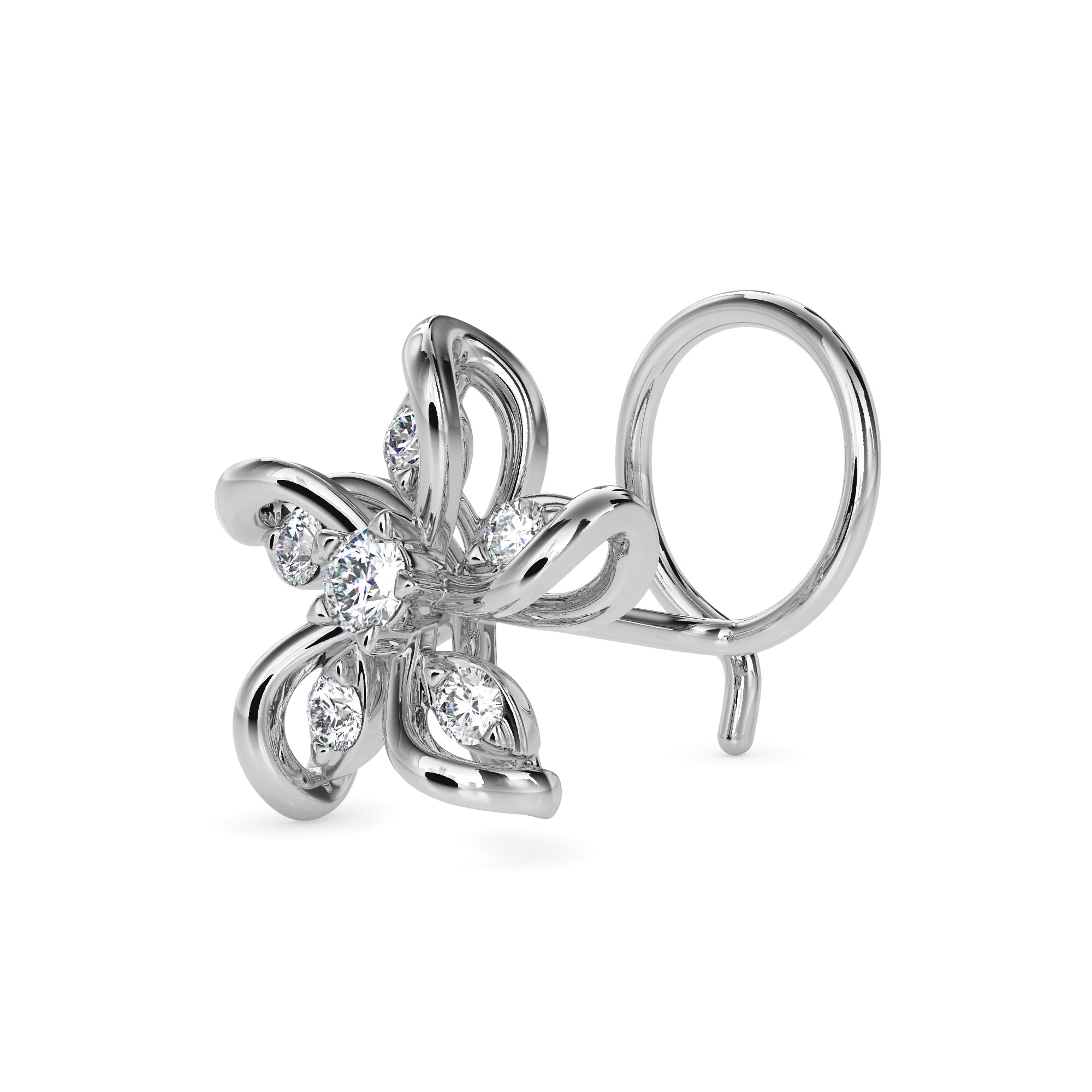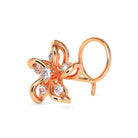 A delicate floral design adorned with sparkling diamonds, this nose pin exudes grace and charm. The intricate petals wrap around a central gem, capturing the essence of nature's beauty in a timeless, elegant piece. Perfect for those seeking a refined yet subtle sparkle in their everyday look.